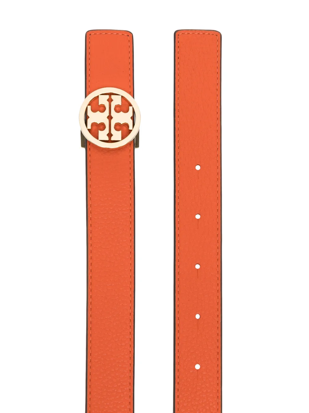 Crafted from orange calf leather, Tory Burch’s reversible belt is distinguished by the unmistakable Double T logo plaque that doubles as a buckle.