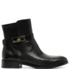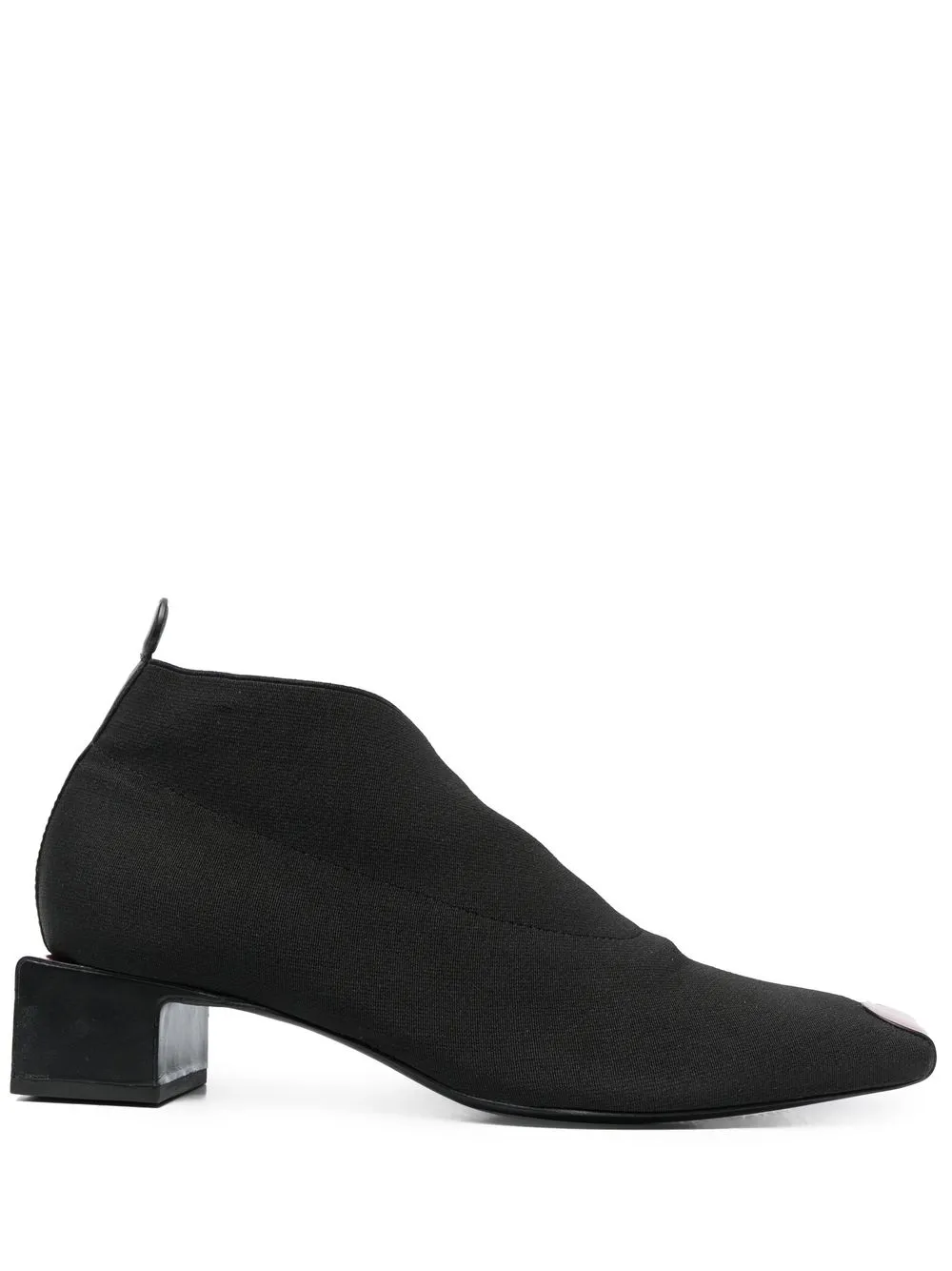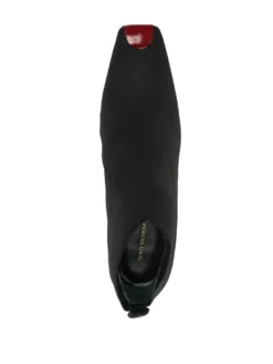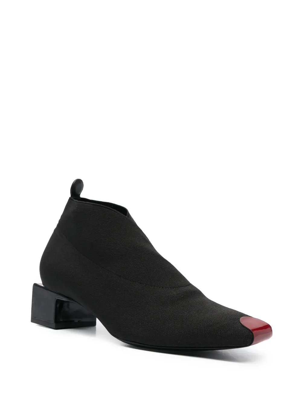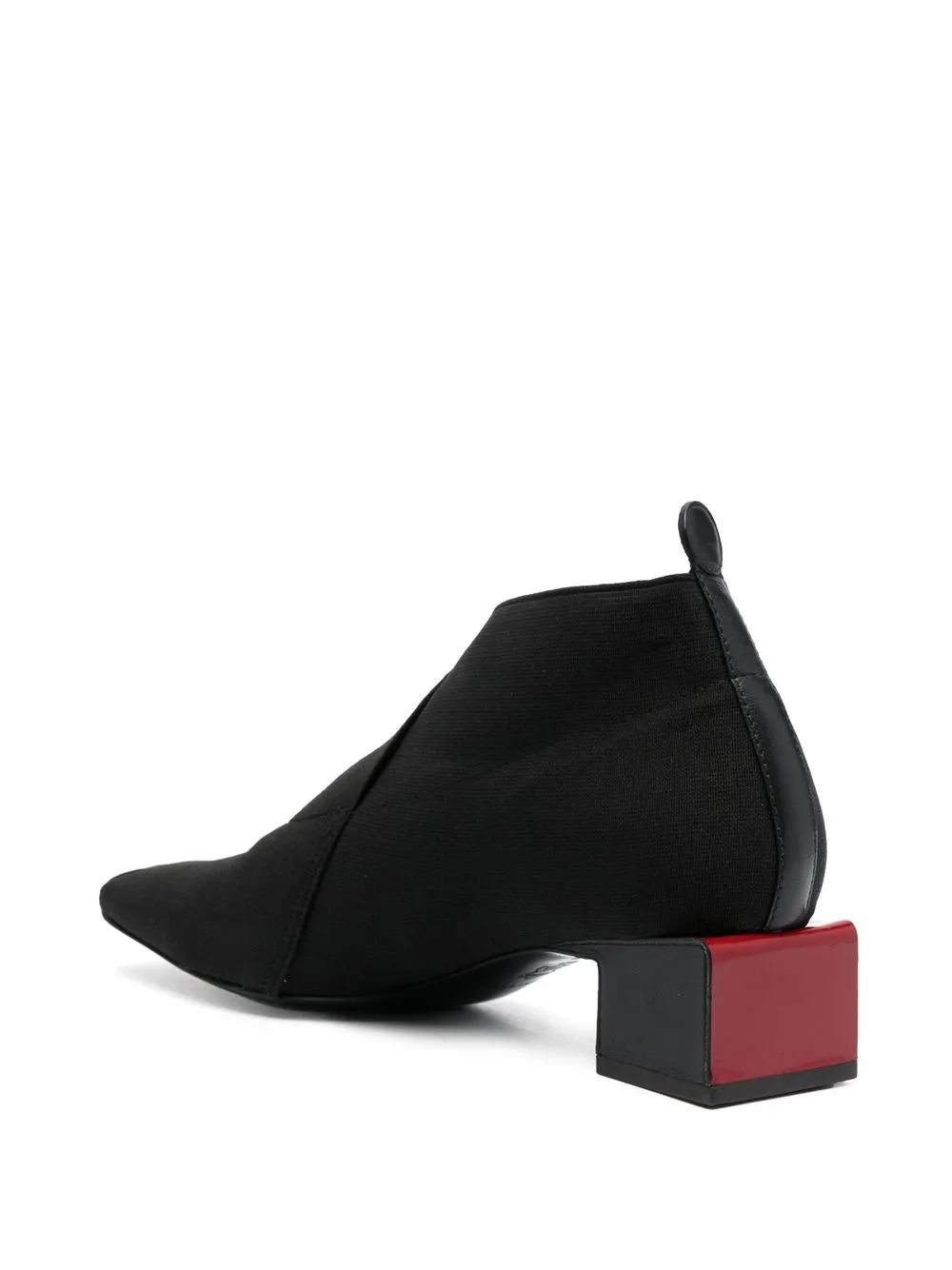 55mm pointed boots from TORY BURCH featuring dark red, calf leather, ankle-length, high block heel, slip-on style, stretch-design and black.