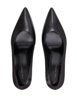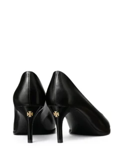 65mm mid heel pumps from TORY BURCH featuring black, calf leather, nappa leather, gold-tone logo plaque, pointed toe, branded insole, stiletto heel and mid heel.