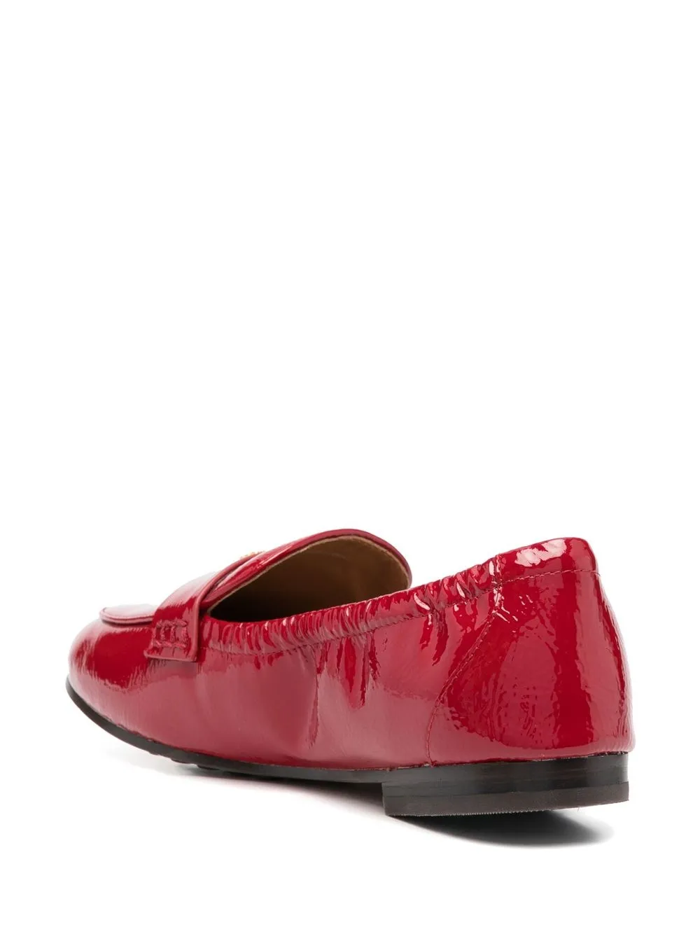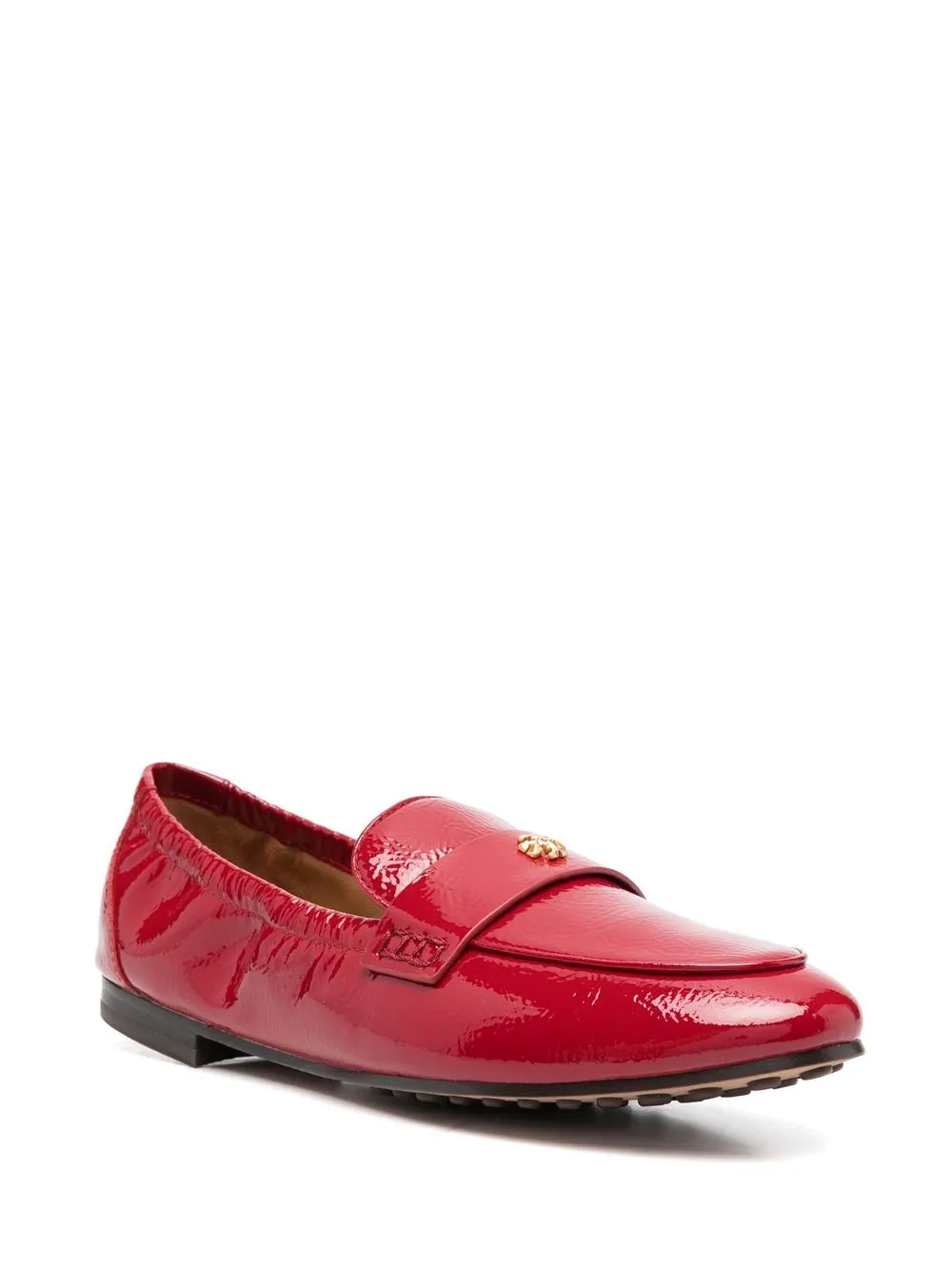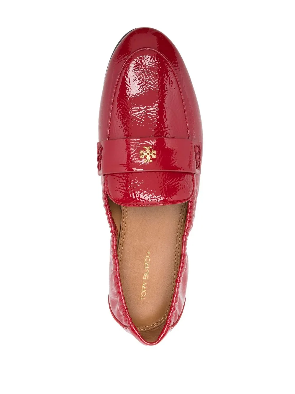 Ballet 20mm loafers from TORY BURCH featuring red, patent leather, gold-tone logo plaque, round toe, branded leather insole, low block heel and ridged rubber sole.