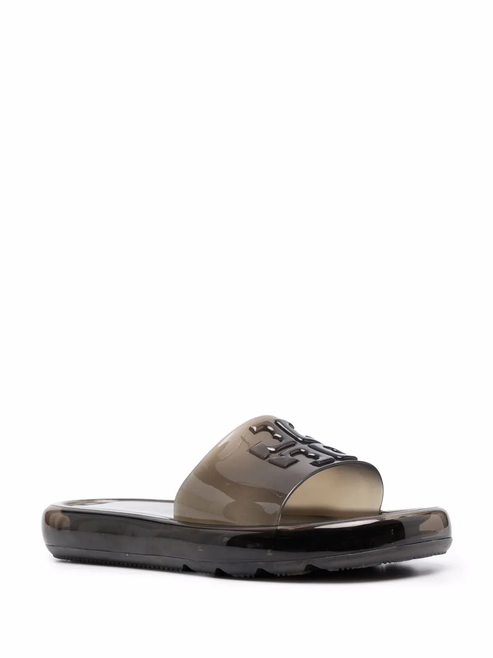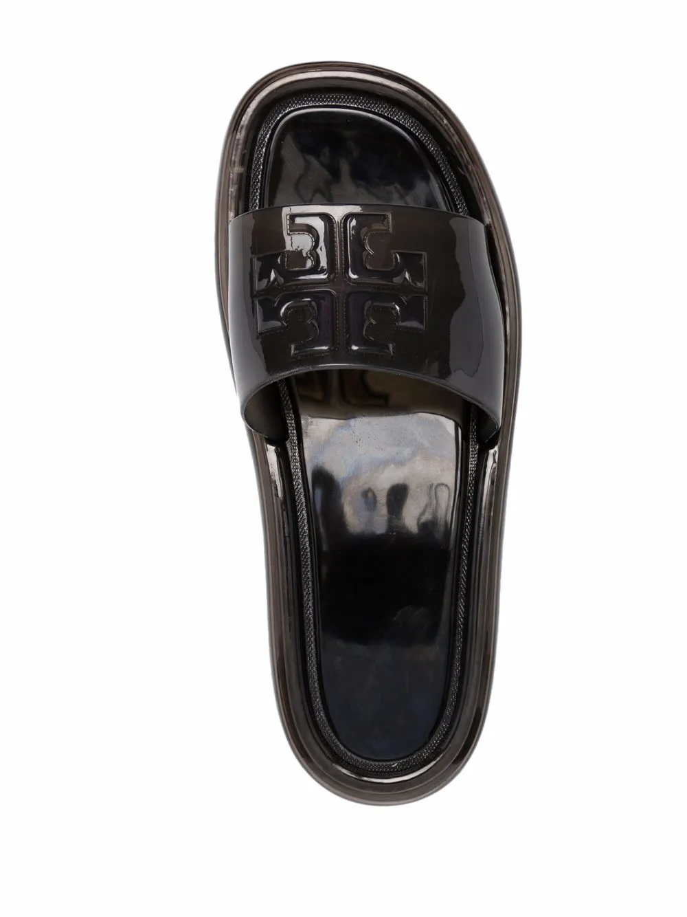 Blac k transparent sole slides from TORY BURCH featuring slip-on style, open toe and flat rubber sole.