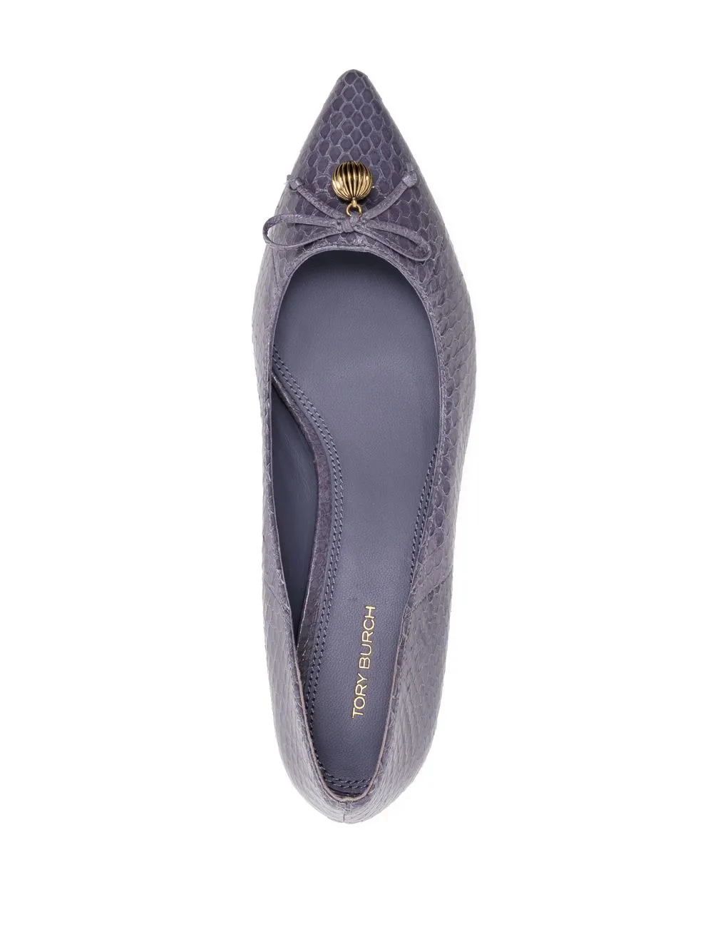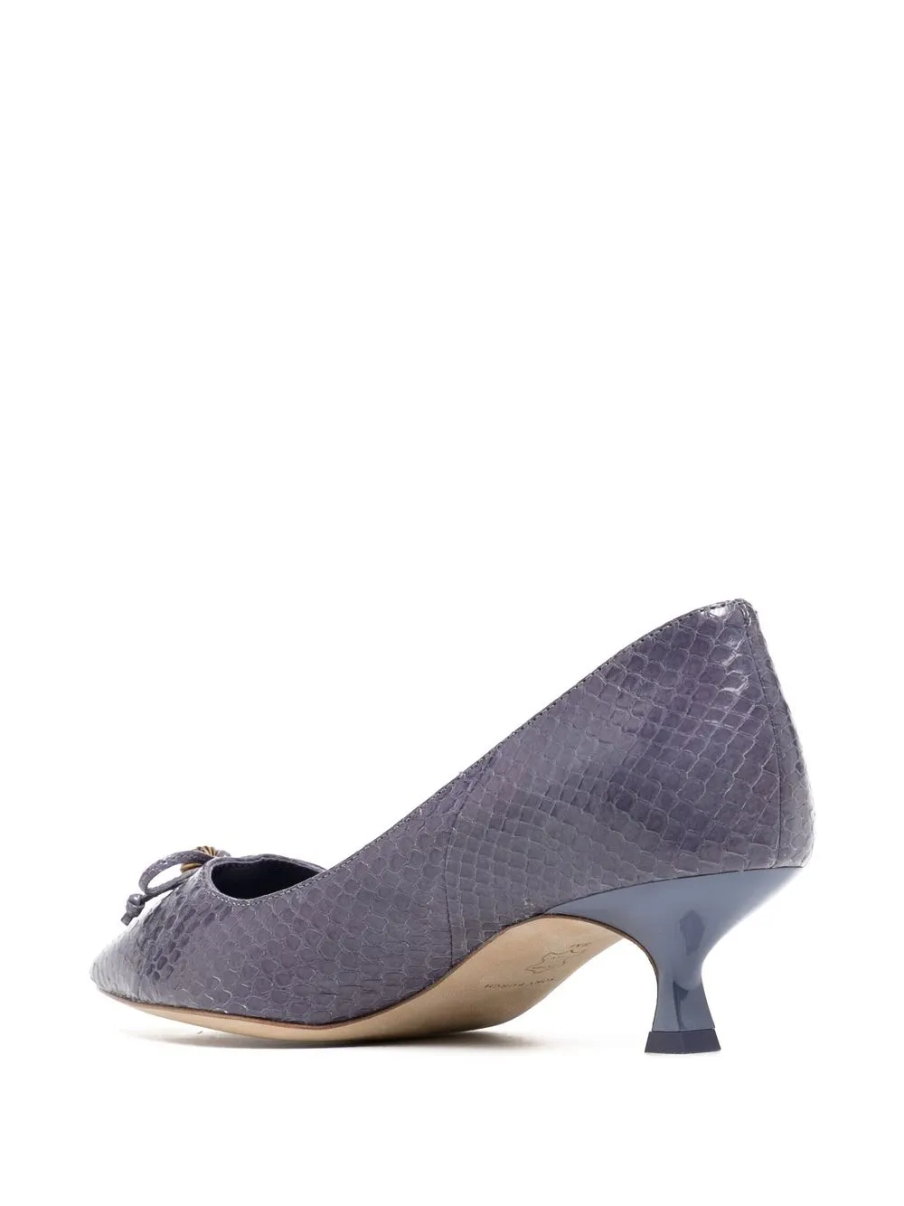 Capri 40mm pumps from TORY BURCH featuring blue, leather, snakeskin effect, bow detailing, pointed toe, branded leather insole, kitten heel and leather outsole.