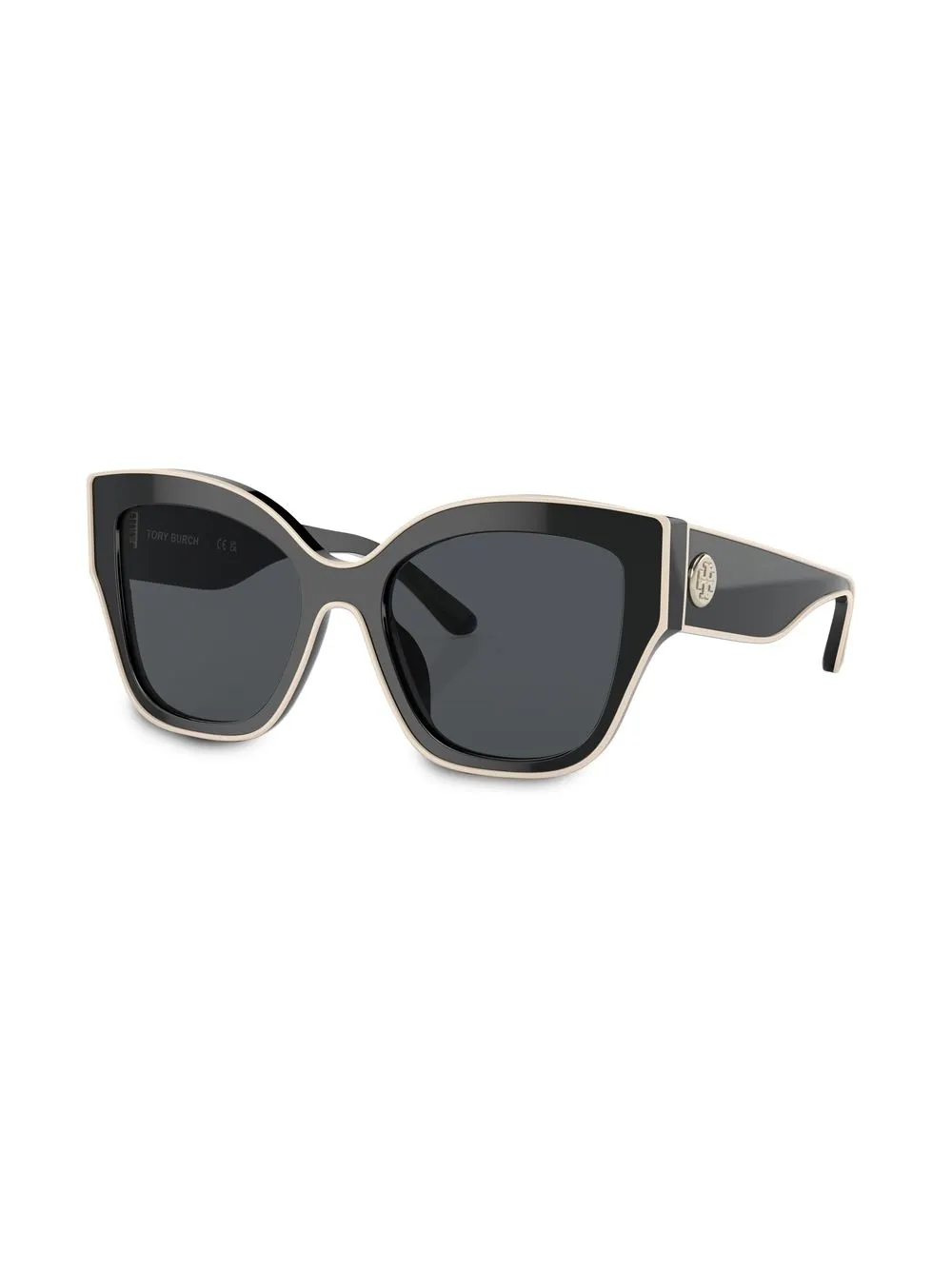 cat eye-frame sunglasses from TORY BURCH featuring cat-eye frame, grey tinted lenses, UV-protective lenses, straight arms and black. These glasses come with a protective case..