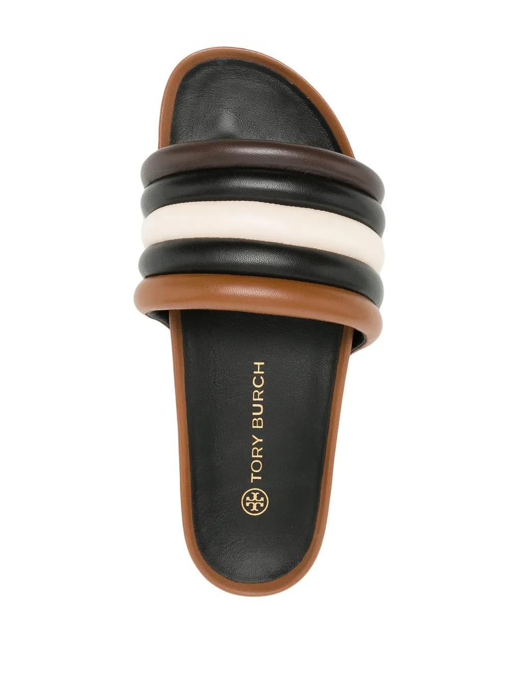 Designed by Tory Burch, these sandals get their distinctive look from the quilted colour-block design. Set atop a platform sole, the slip-on style adds to a relaxed look.