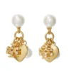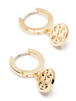 Double-T drop earrings from TORY BURCH featuring gold-tone, brass, signature Double T motif, small hoop design, hinge-pin fastening and for pierced ears. These earrings come as a pair..