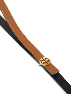 Tory Burch transforms the classic leather belt by presenting this reversible iteration. Crafted in two different colours – it is black on one side and brown on the other – this piece is adorned with the brand’s Double T motif that leaves no doubt on who designed it.