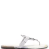 Tory Burch’s sandals are defined by their shearling toe strap that brings a sense of luxe to the sporty-inspired silhouette. With a flat rubber sole that contrasts with its upper, this pair is adorned with the brand’s iconic T motif as yet another sumptuous detail.