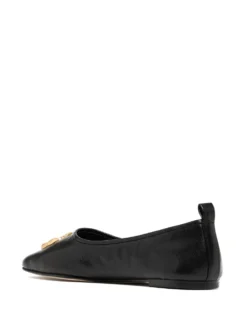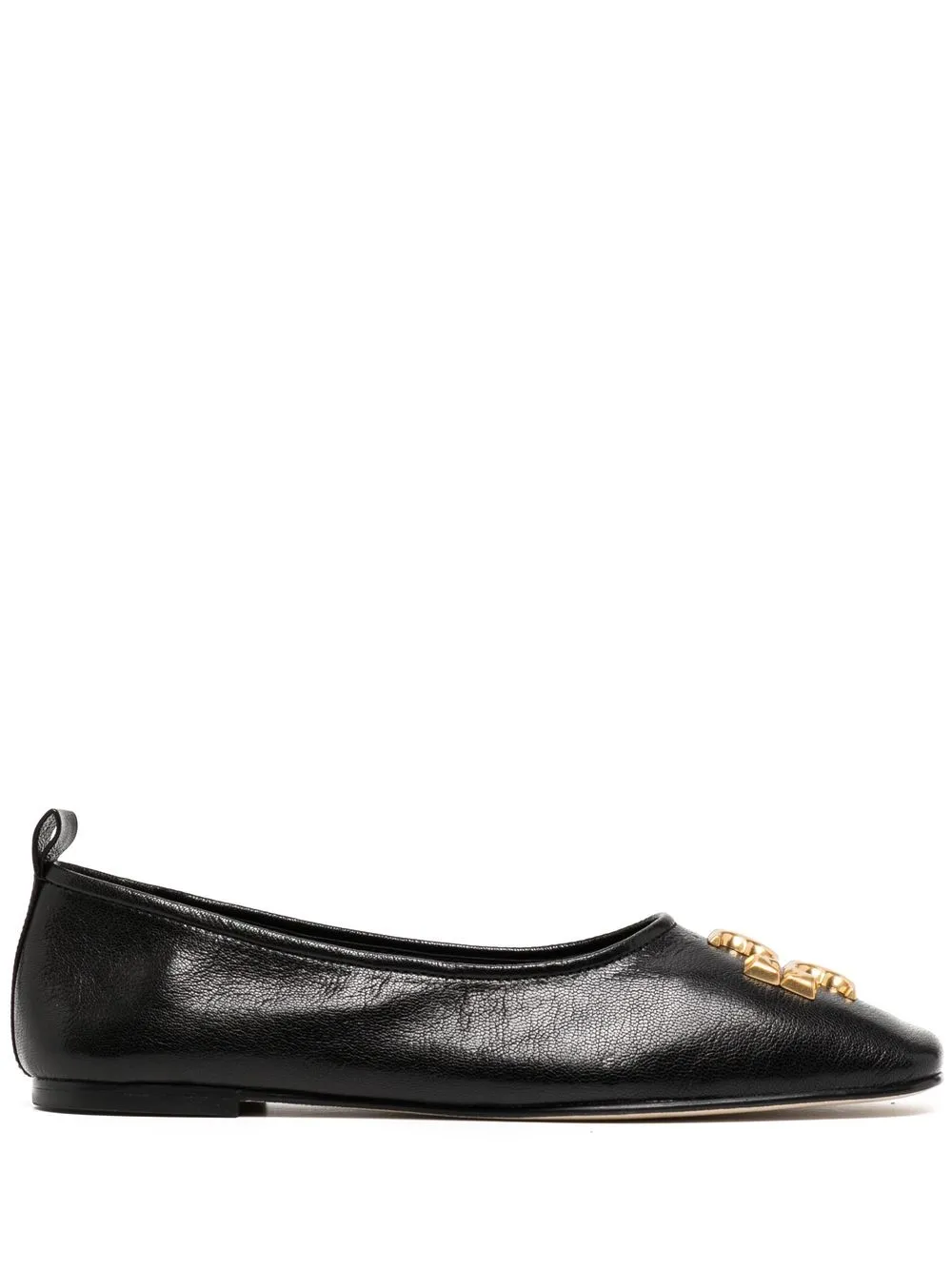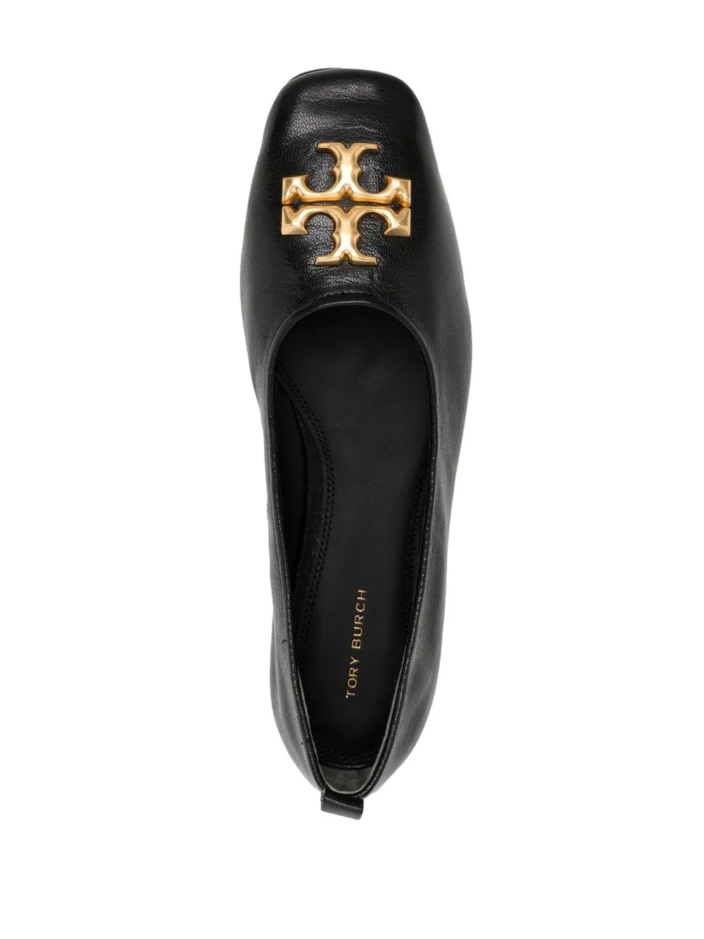 Eleanor 10mm ballerina shoes from TORY BURCH featuring black, leather, signature Double T motif, square toe, pull-tab at the heel, branded leather insole and leather outsole.