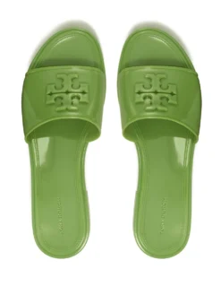 Eleanor 30mm jelly slides from TORY BURCH featuring light green, embossed logo to the front, branded insole, open toe, single toe strap and low heel.