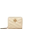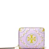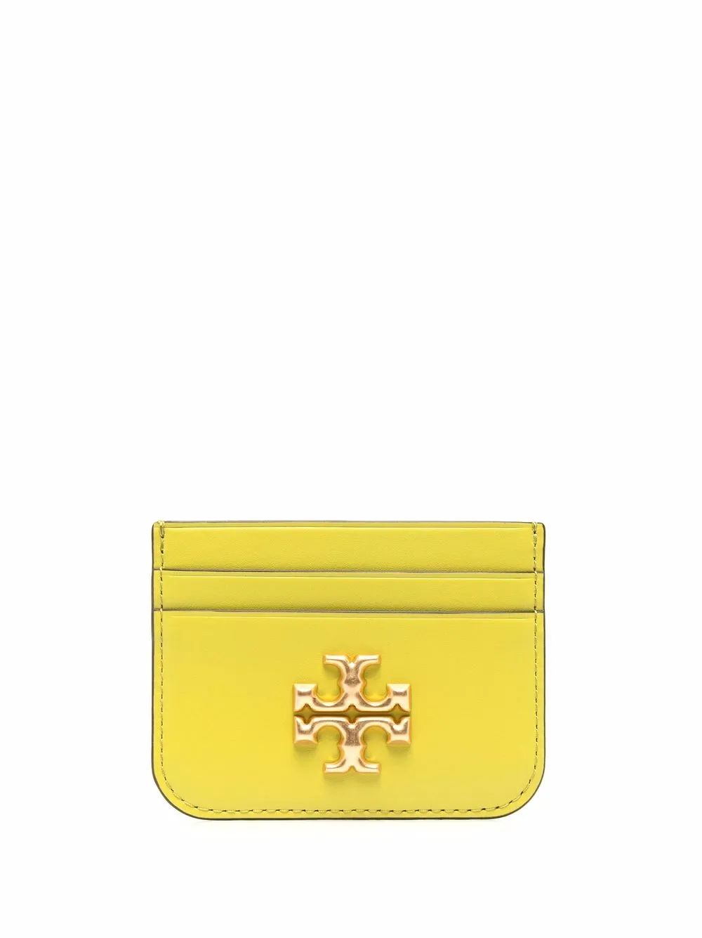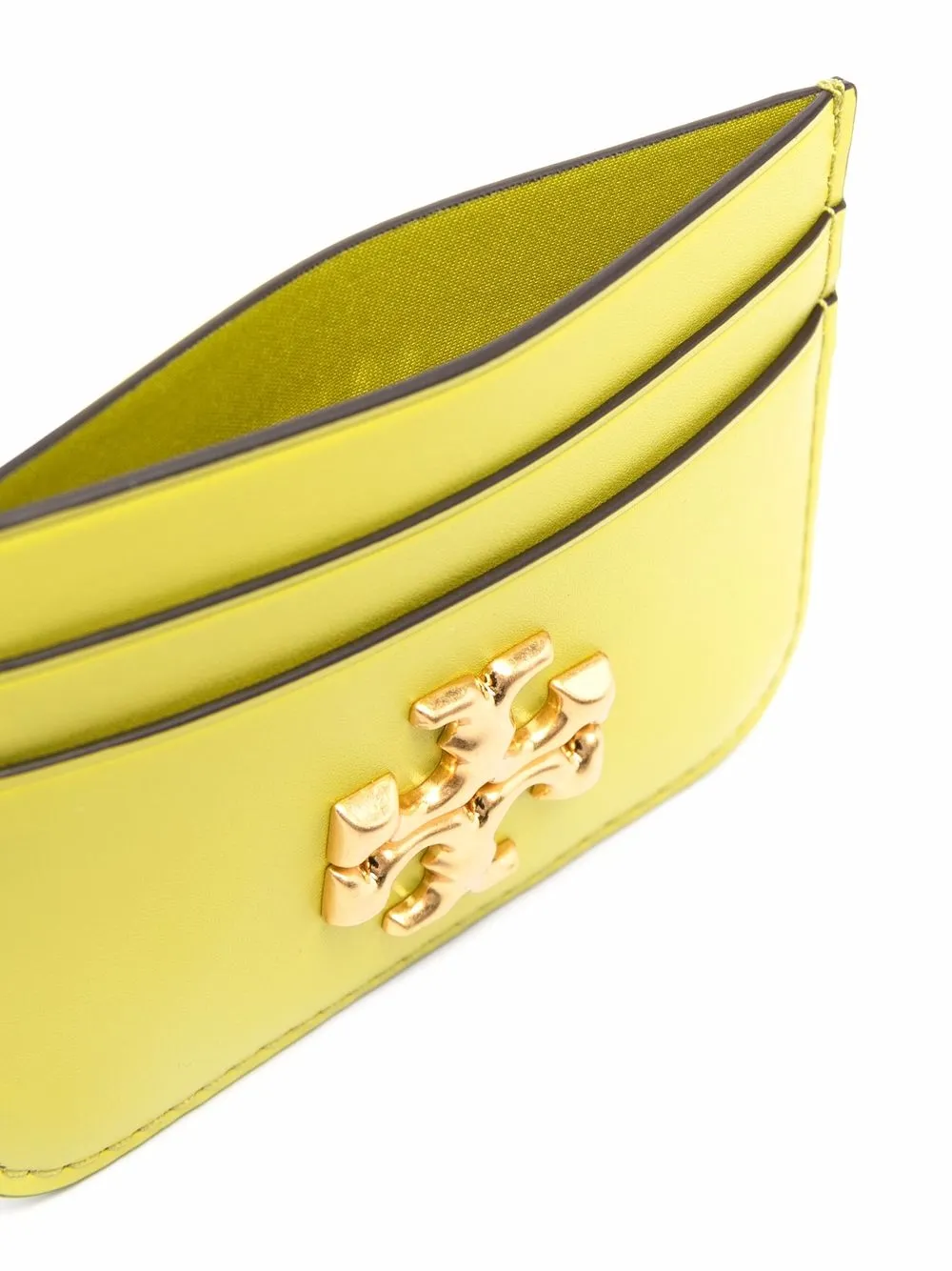 Island chartreuse leather Eleanor card case from TORY BURCH featuring gold-tone logo plaque and card slots.