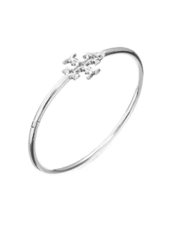Eleanor hinged cuff from TORY BURCH featuring silver-tone, logo plaque, polished effect and slip-on style.