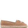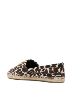 Eleanor leaped-print espadrilles from TORY BURCH featuring multicolour, all-over leopard print, gold-tone logo plaque, round toe and flat sole.