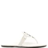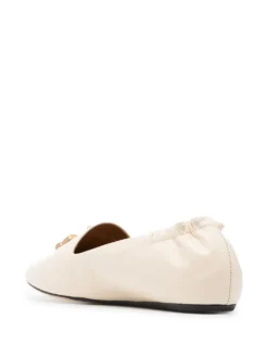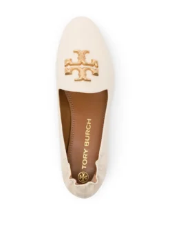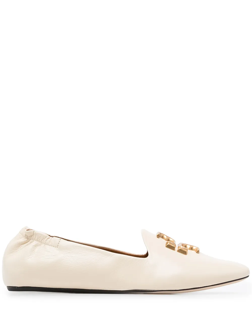 White leather logo-plaque loafers from TORY BURCH featuring gold-tone logo plaque, branded insole, round toe and flat leather sole.