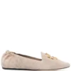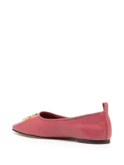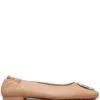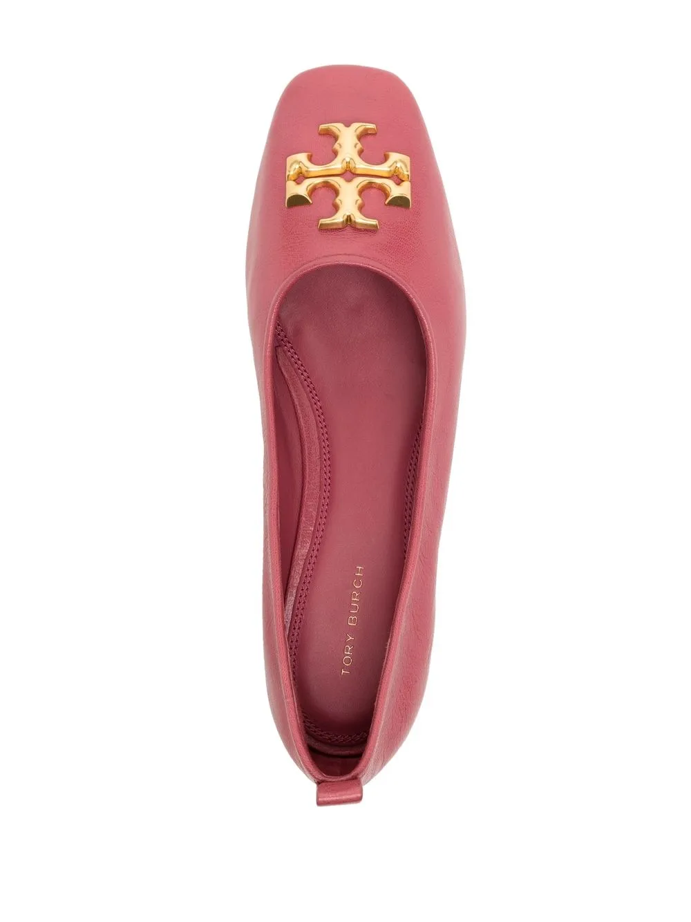 Eleanor logo-plaque ballet pump from TORY BURCH featuring coral pink, leather, almond toe, gold-tone logo plaque, pull-tab at the heel and flat leather sole.