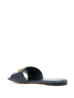 Designed by Tory Burch, these Eleanor slides proudly exhibit the signature Double T logo over the toe, adding a refined touch to the relaxed slip-on style.