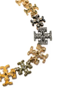 Gold-tone/black embellished logo necklace from TORY BURCH featuring logo charm, crystal embellishment and clasp fastening.
