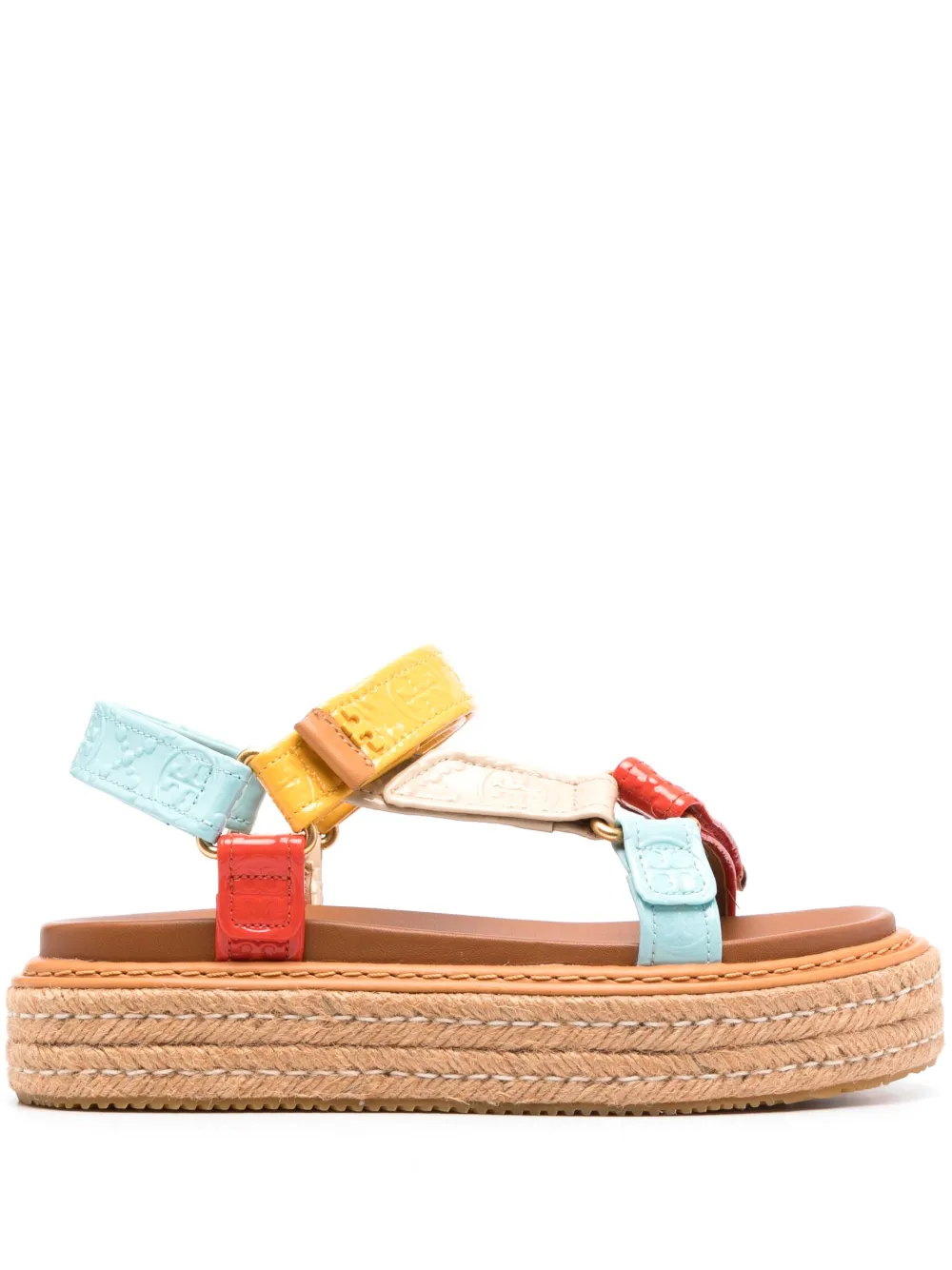 embossed-design leather sandals