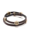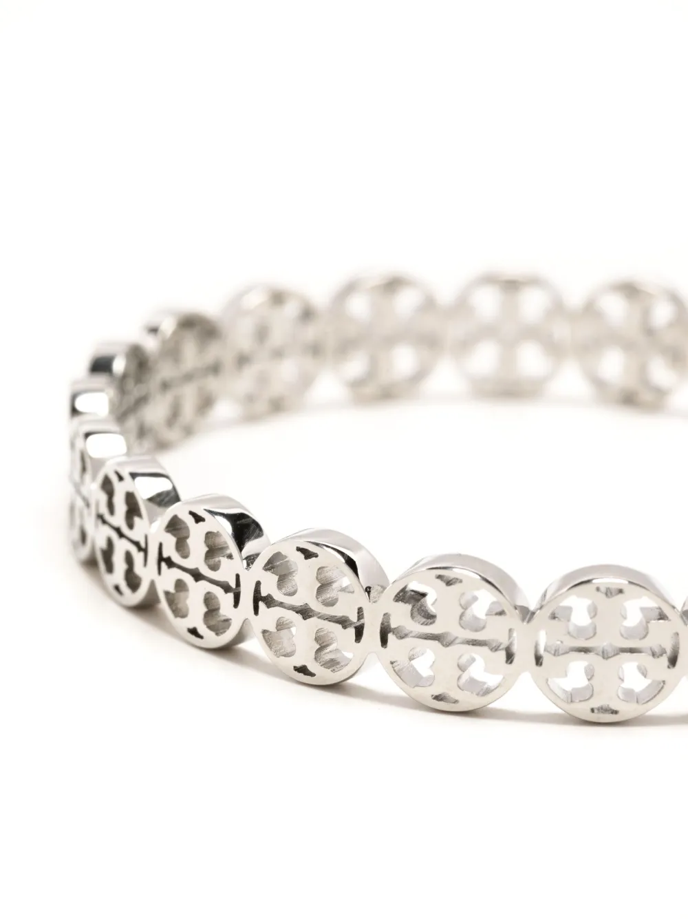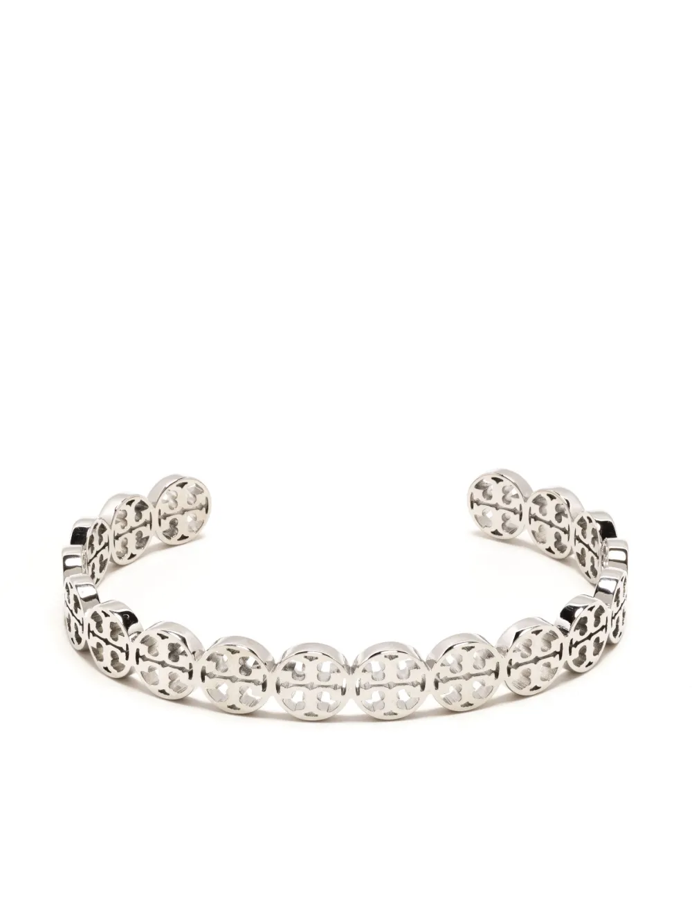 engraved-logo thin bracelet from TORY BURCH featuring silver-tone, silver plated, engraved logo, circle motif and thin band.