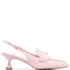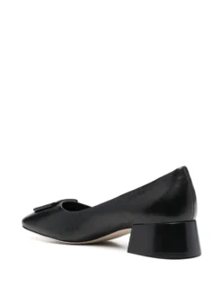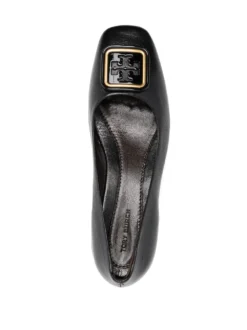 Georgia 35mm leather pumps from TORY BURCH featuring black, calf leather, signature Double T motif, logo plaque, branded leather insole, square toe, slip-on style and 35mm block heel.