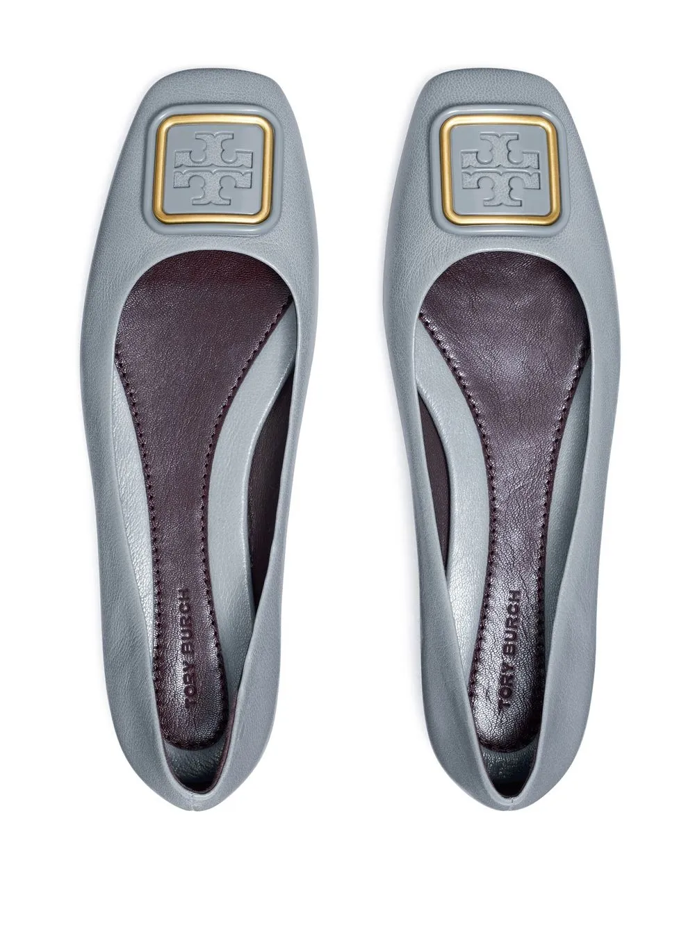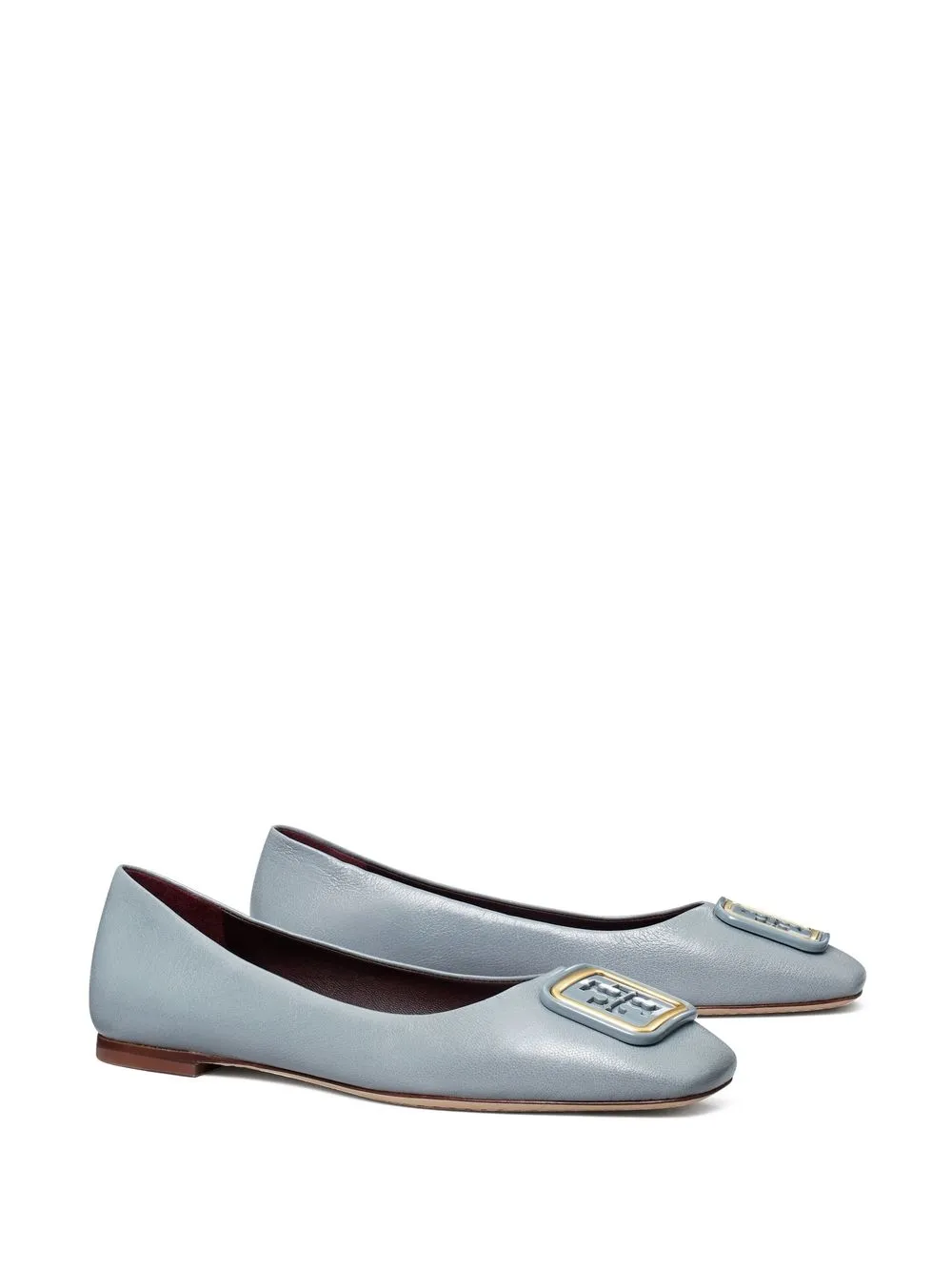 Georgia ballet shoes from TORY BURCH featuring rainbow motif, nappa leather, grained texture, logo plaque, square toe, branded leather insole, low heel and slip-on style.
