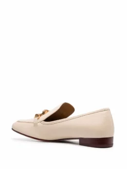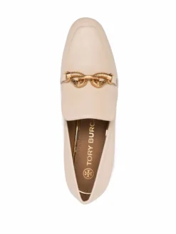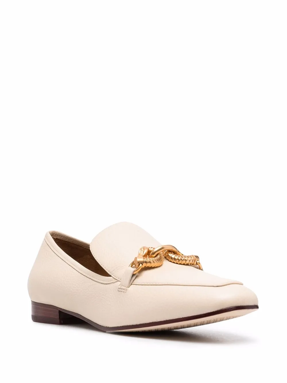 New cream leather horsebit-detail loafers from TORY BURCH featuring horsebit detail, almond toe, slip-on style, flat leather sole and branded insole.