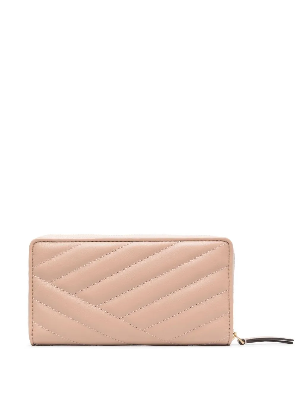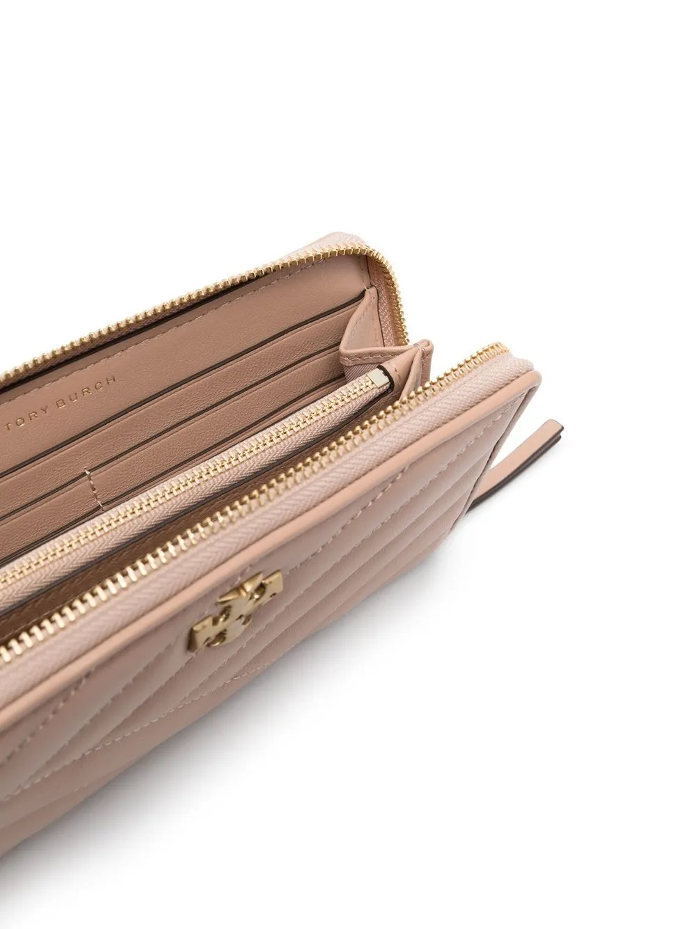 Kira chevron Continental wallet from TORY BURCH featuring sand beige, lambskin, gold-tone, chevron quilting, logo plaque, all-around zip fastening, card slots and internal zip-fastening pocket.