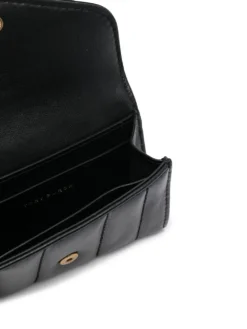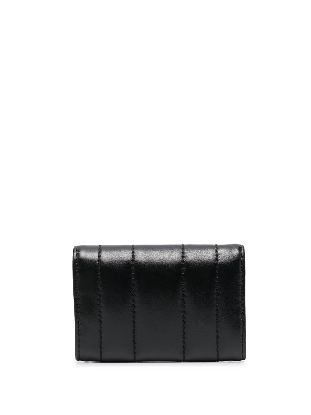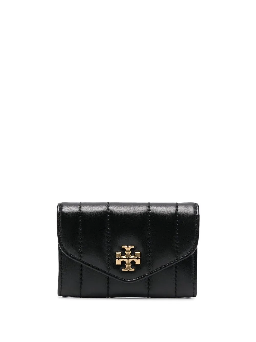 quilted leather wallet from TORY BURCH featuring lambskin, black, quilted finish, foldover top and logo clasp fastening.