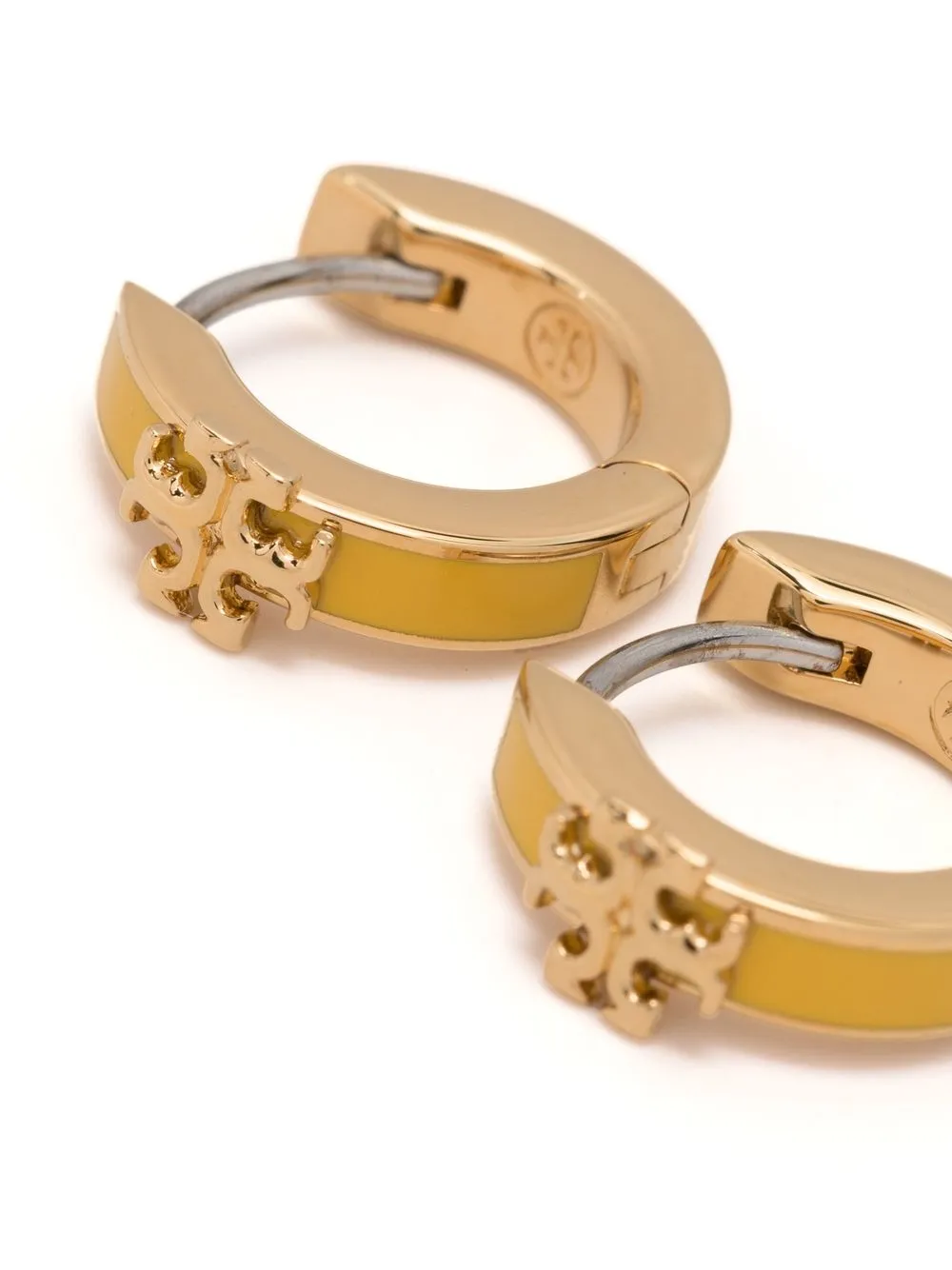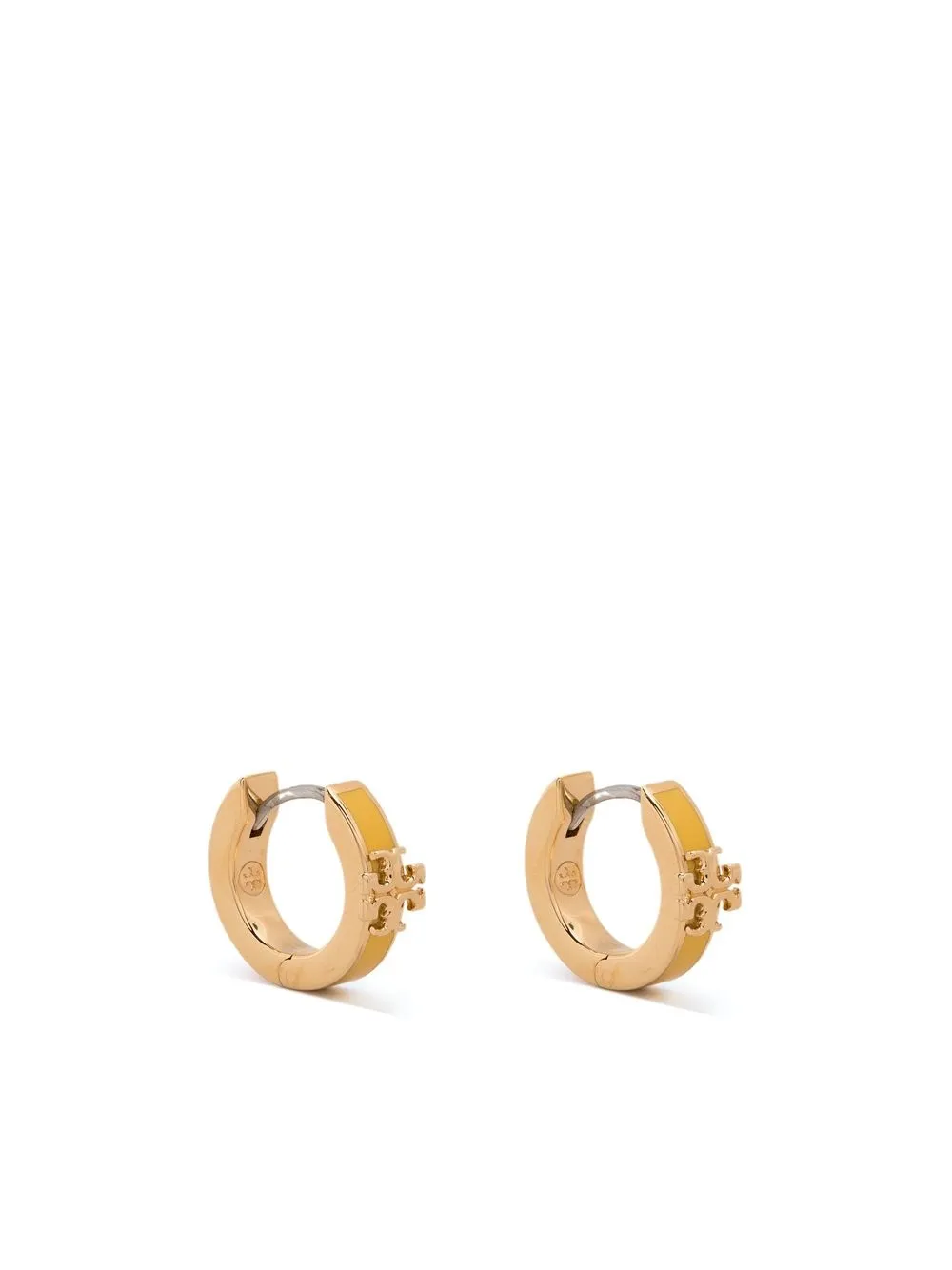 Kira logo huggie hoops from TORY BURCH featuring gold-tone, logo plaque, polished effect, huggie hoop design and bar-pin fastening. These earrings come as a pair..