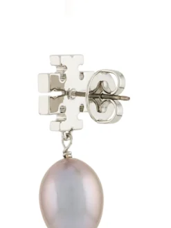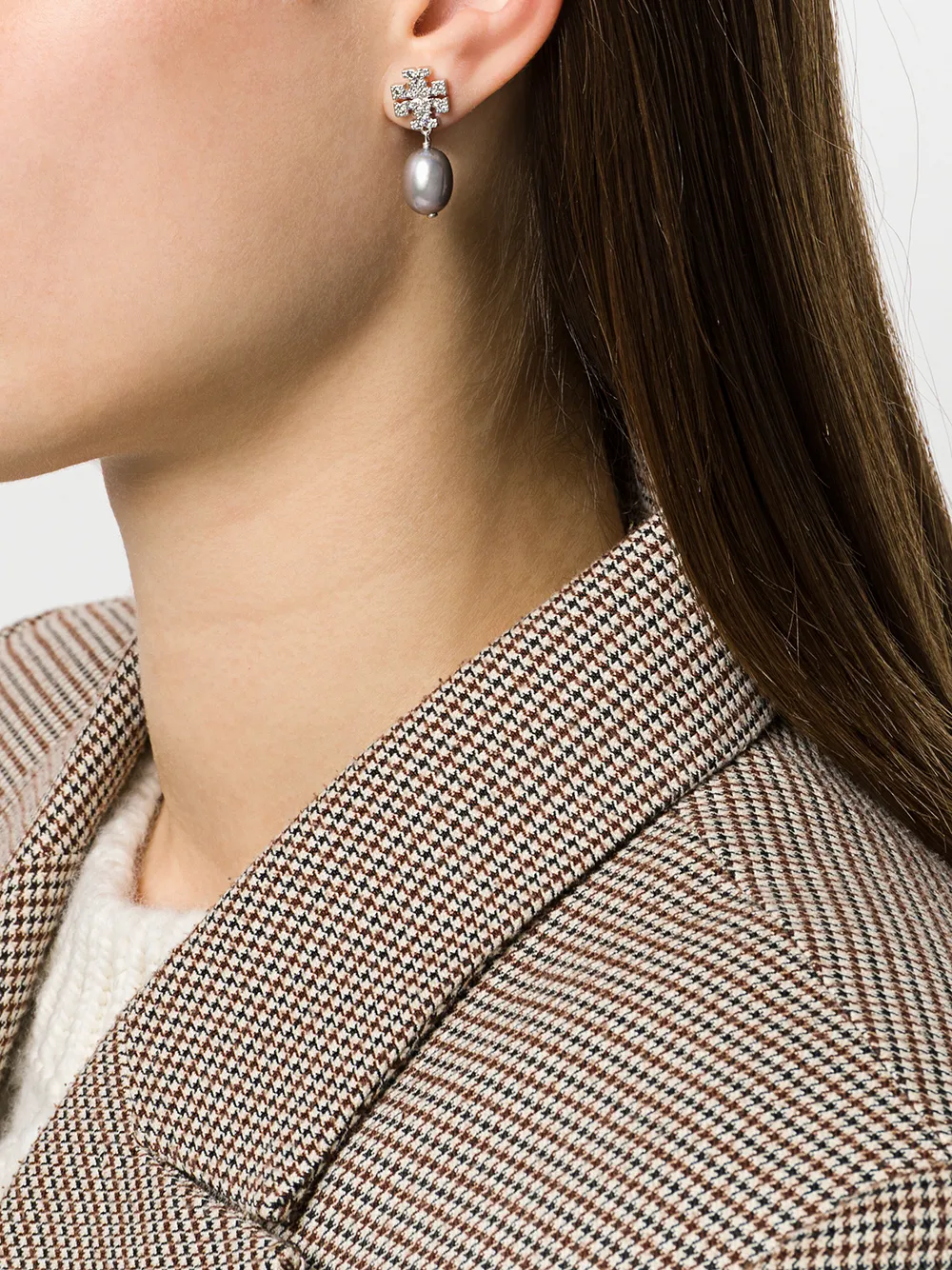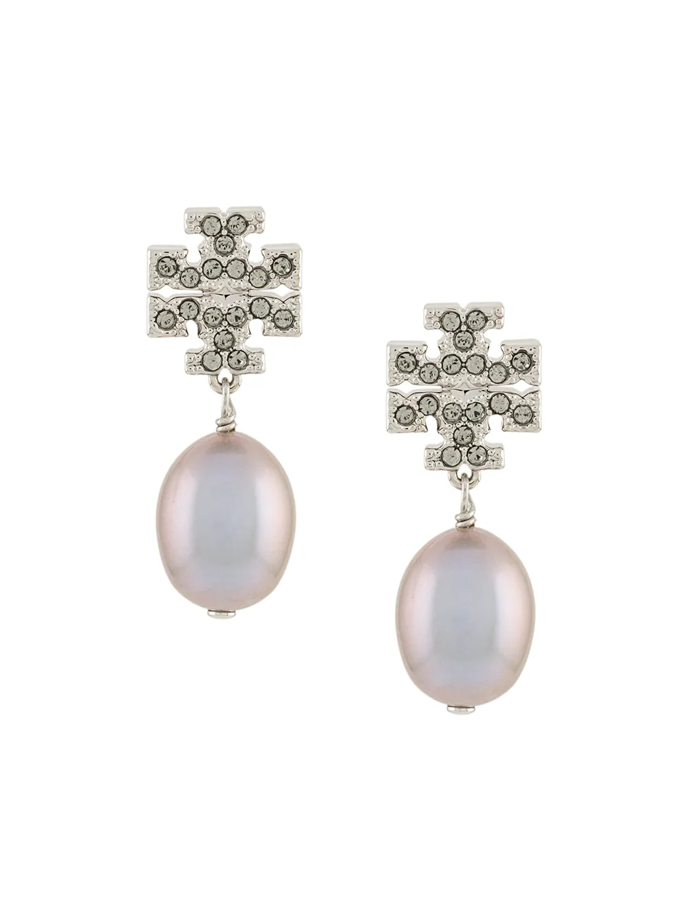 Silver-tone brass Kira pavé pearl drop earrings from Tory Burch featuring pavé set crystals, a butterfly fastening and a drop pearl detail. These earrings come as a pair.