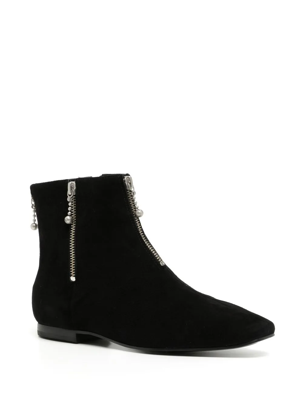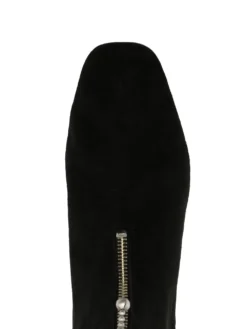 leather zipper booties from TORY BURCH featuring black, leather, side zip fastening, suede, front zip fastening, rear zip fastening and square toe.