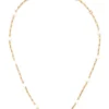 logo chain-link necklace from TORY BURCH featuring gold-tone, logo plaque, pearl detailing, chain-link detailing and clasp fastening.