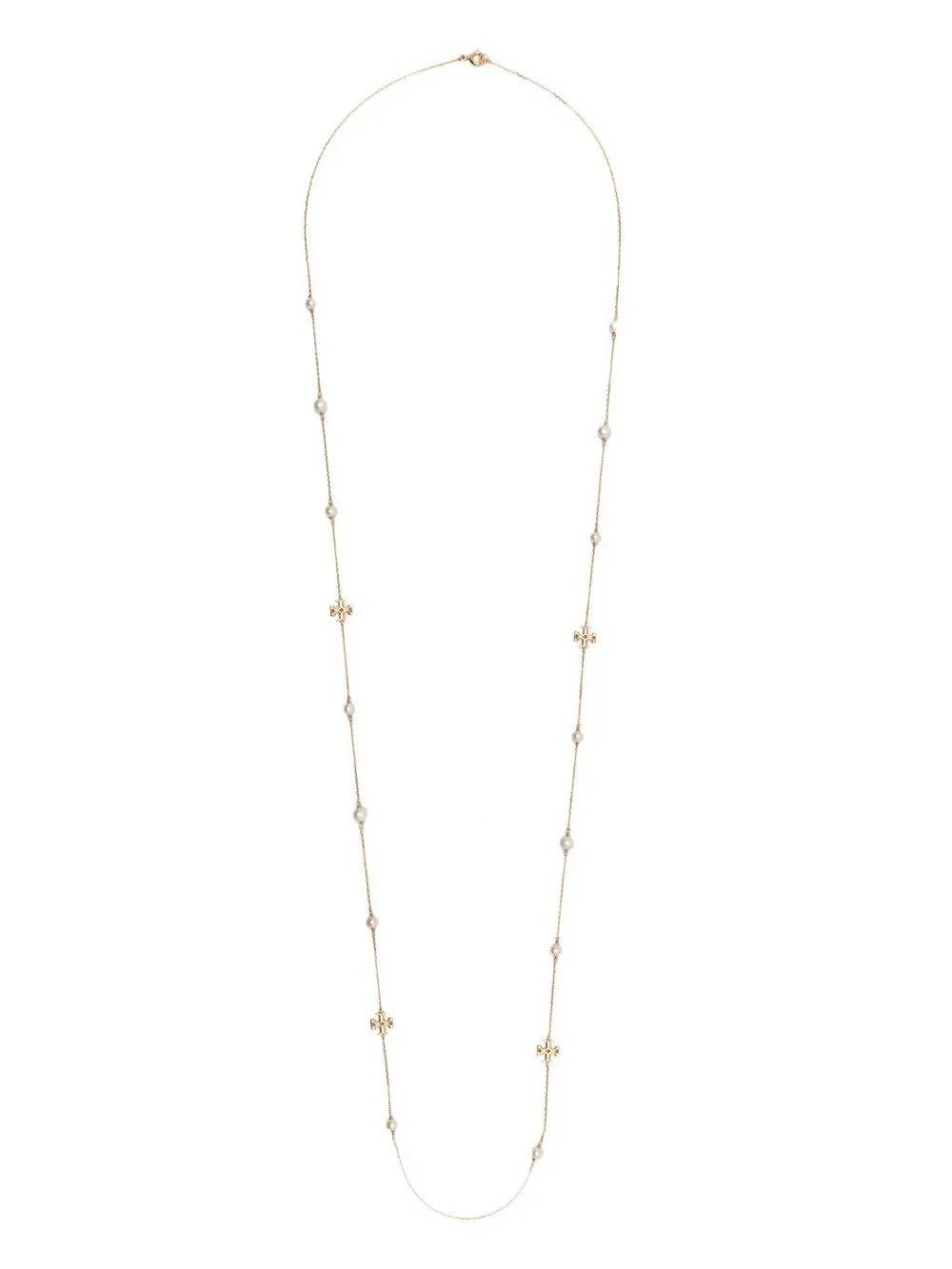 logo-charm chain-link necklace from TORY BURCH featuring gold-tone, brass, logo charm, chain-link detailing and gold-tone hardware.