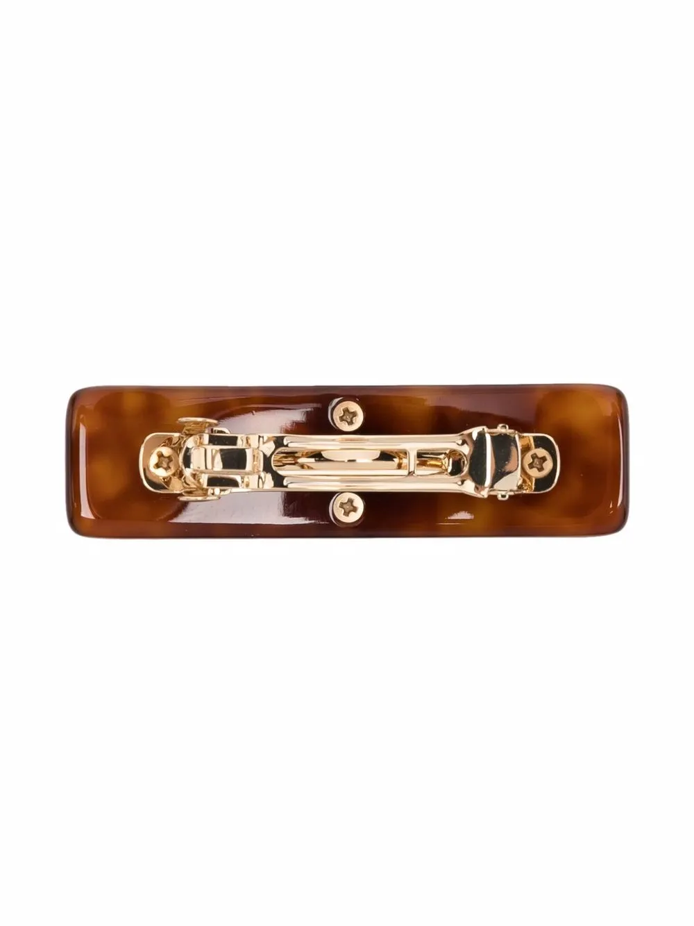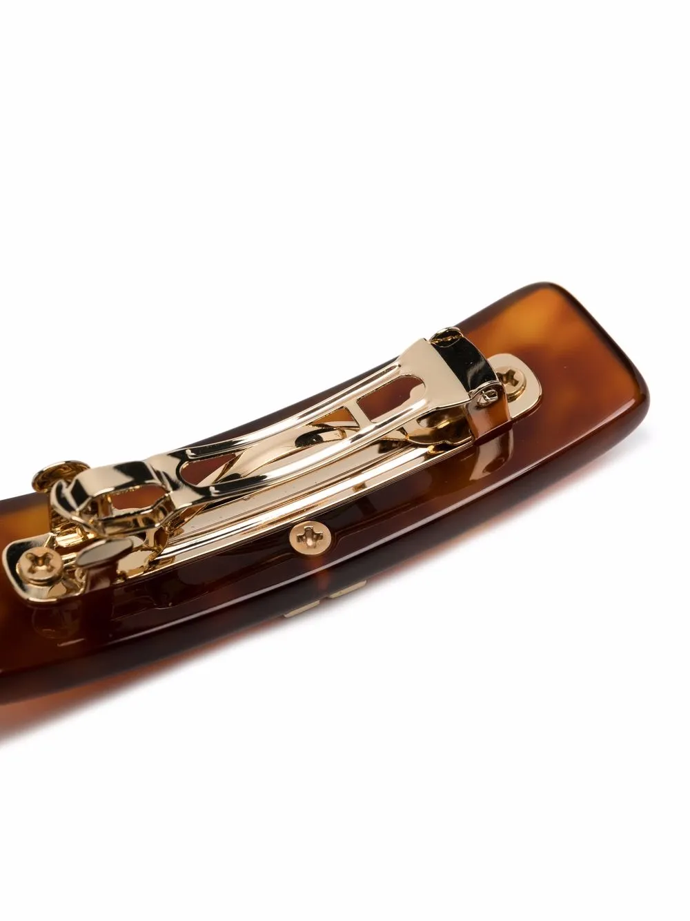 Tortoiseshell logo hair clip from TORY BURCH featuring tortoiseshell effect, gold-tone logo plaque and clip fastening.