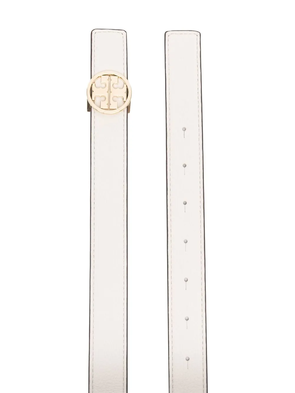 logo-plaque buckle belt from TORY BURCH featuring logo-buckle fastening, punched holes, ivory white, calf leather and adjustable fit.