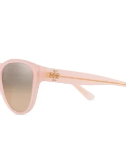 Blush pink acetate logo-plaque detail sunglasses from TORY BURCH featuring gold-tone logo plaque, UV-protective lenses, oversize frame, gradient effect and straight arms. We know you’ll look after them, but these glasses come with protection, just in case..