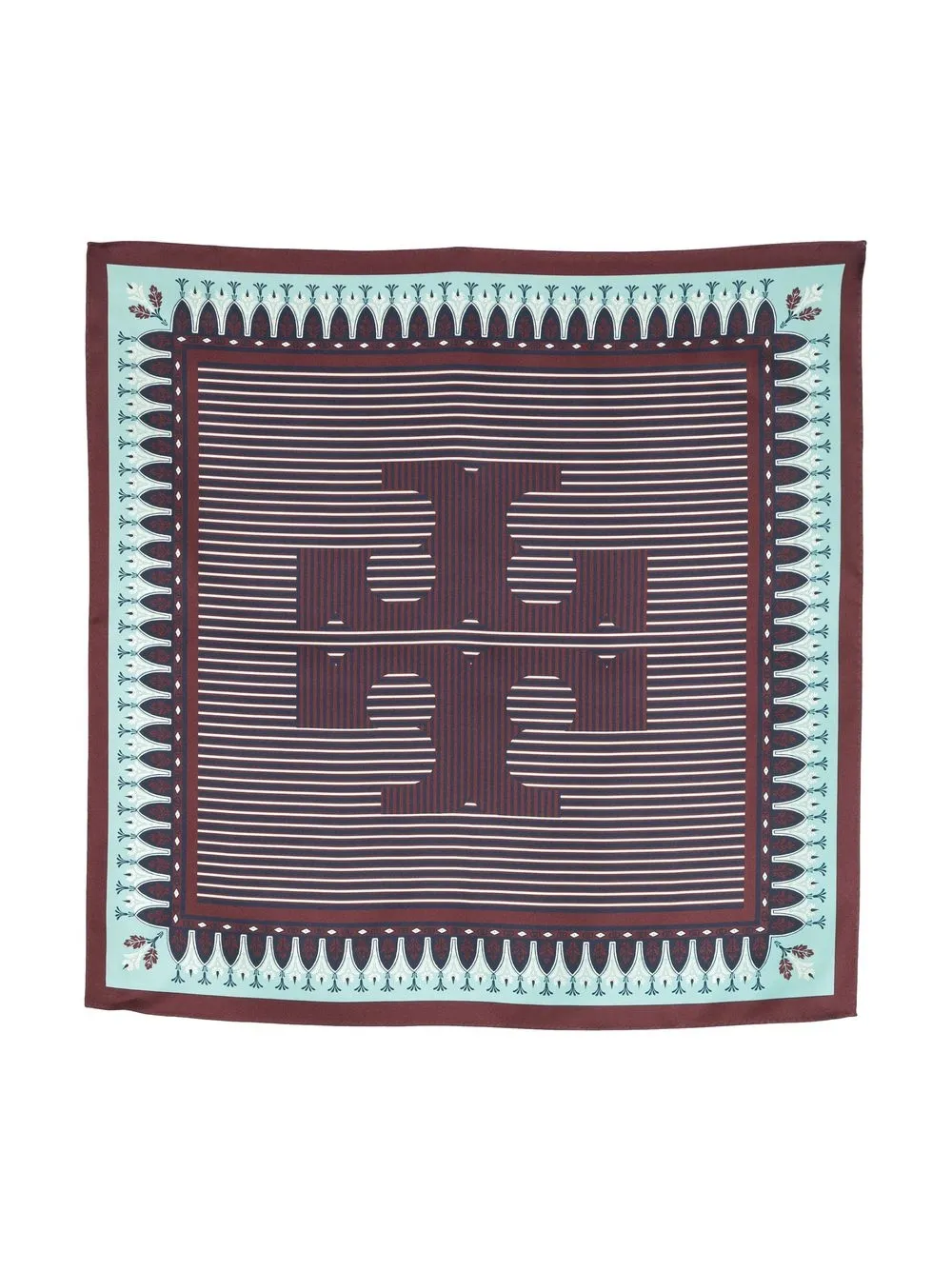 logo-print silk scarf from TORY BURCH featuring multicolour, silk, all-over graphic print, logo print to the front and contrasting trim.
