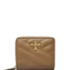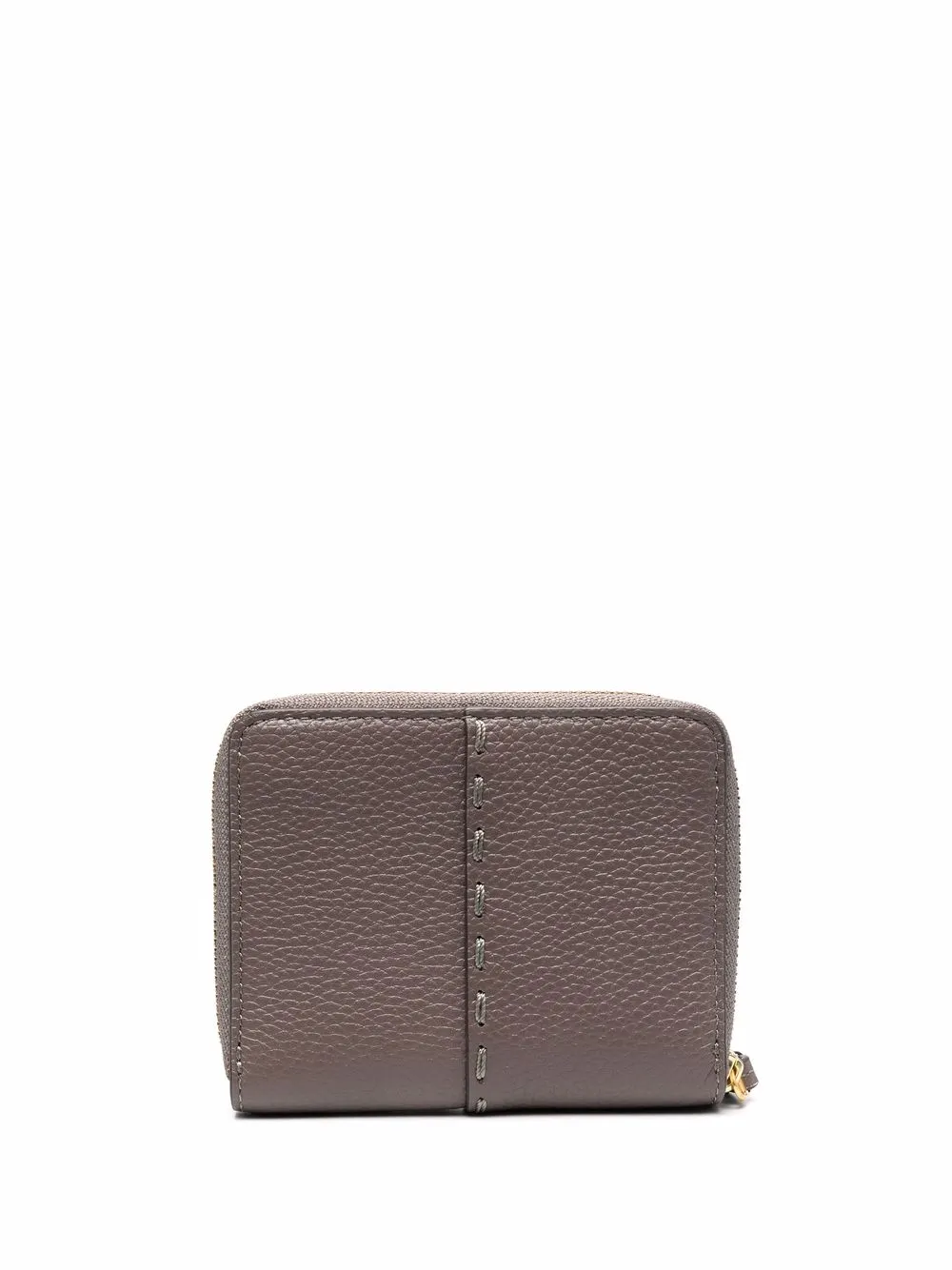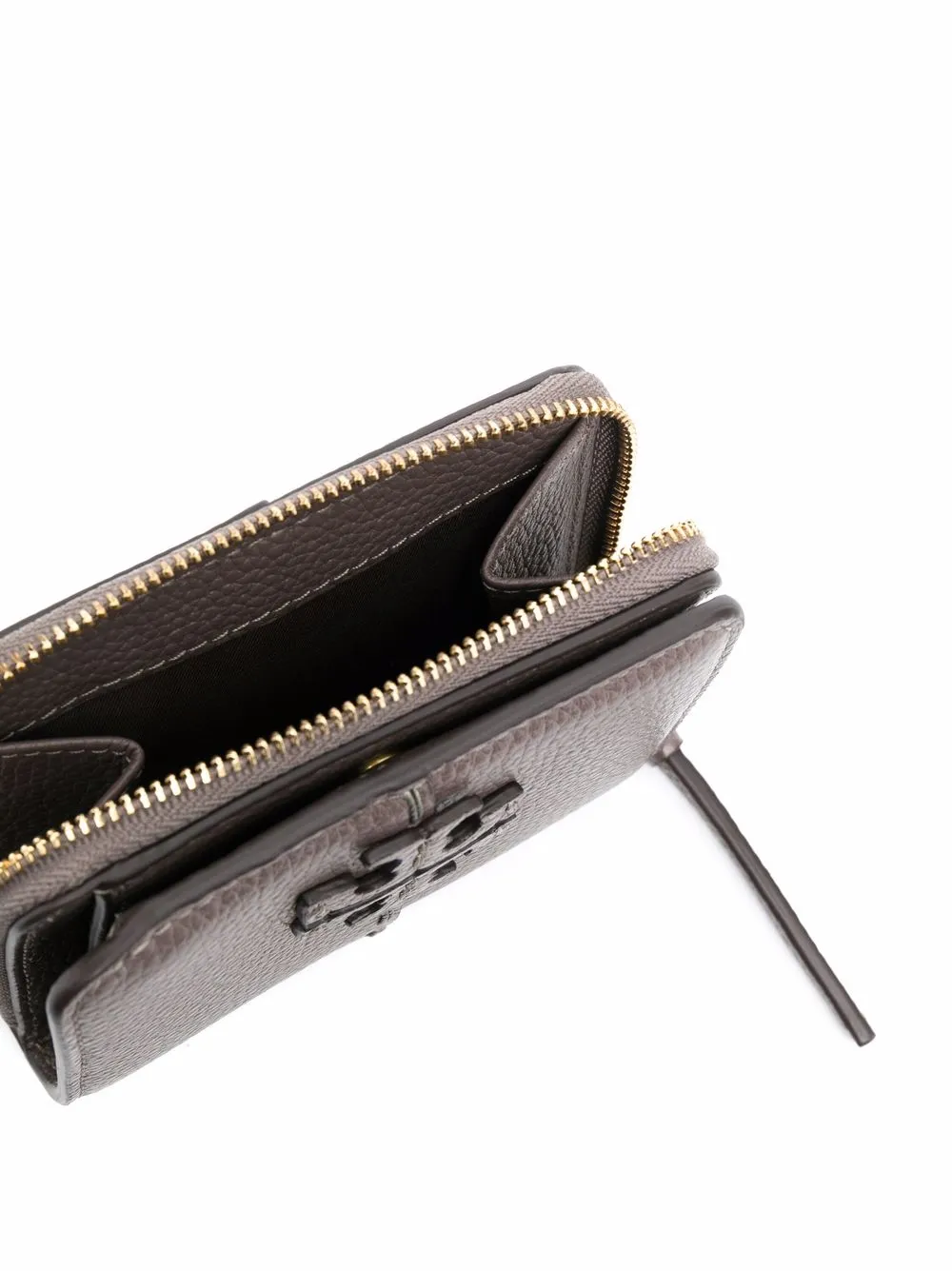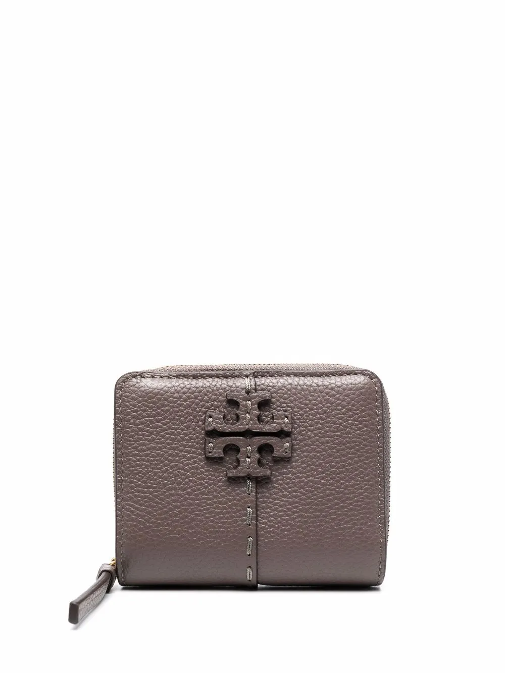 Dark grey leather McGraw logo zip wallet from TORY BURCH featuring logo patch to the front, contrast stitching, all-around zip fastening and front pouch pocket.