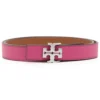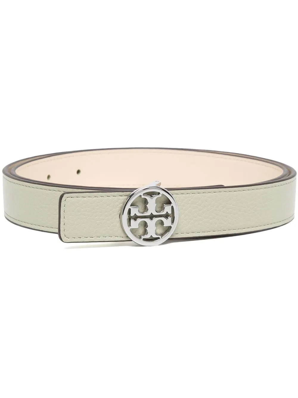 Miller logo-plaque leather belt from TORY BURCH featuring mint green, leather, logo plaque, punched holes and square tip.