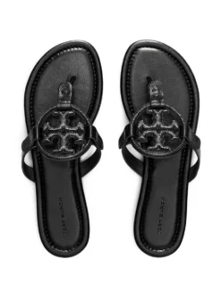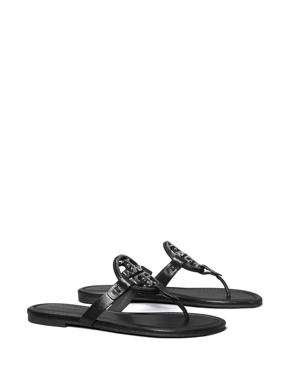 Miller Pavé crystal-embellished sandals from TORY BURCH featuring black, leather, open toe, T-bar strap, signature Double T motif, branded insole and flat rubber sole.