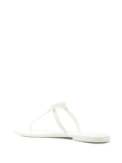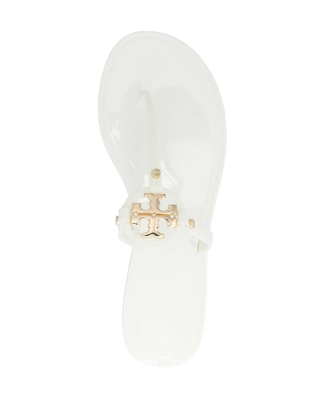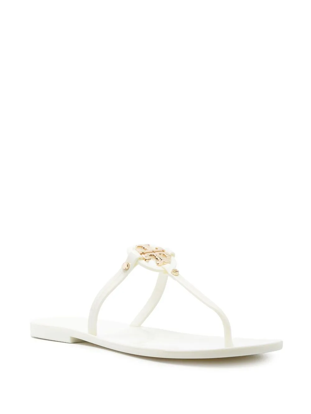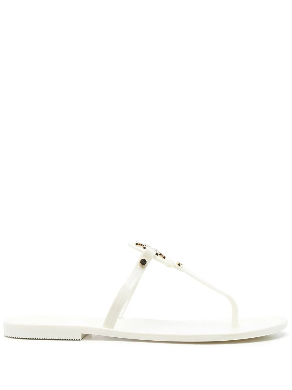Mini Miller thong-strap sandals from TORY BURCH featuring ivory white, gold-tone logo plaque, thong strap, buckle-fastening ankle strap and open toe.