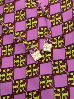 monogram-print bikini bottoms from TORY BURCH featuring magenta, banana yellow, two-tone design, stretch-design and monogram pattern. Be mindful to try on swimwear over your own garments..
