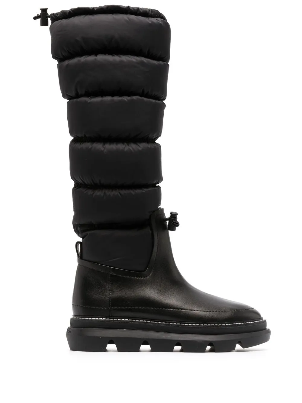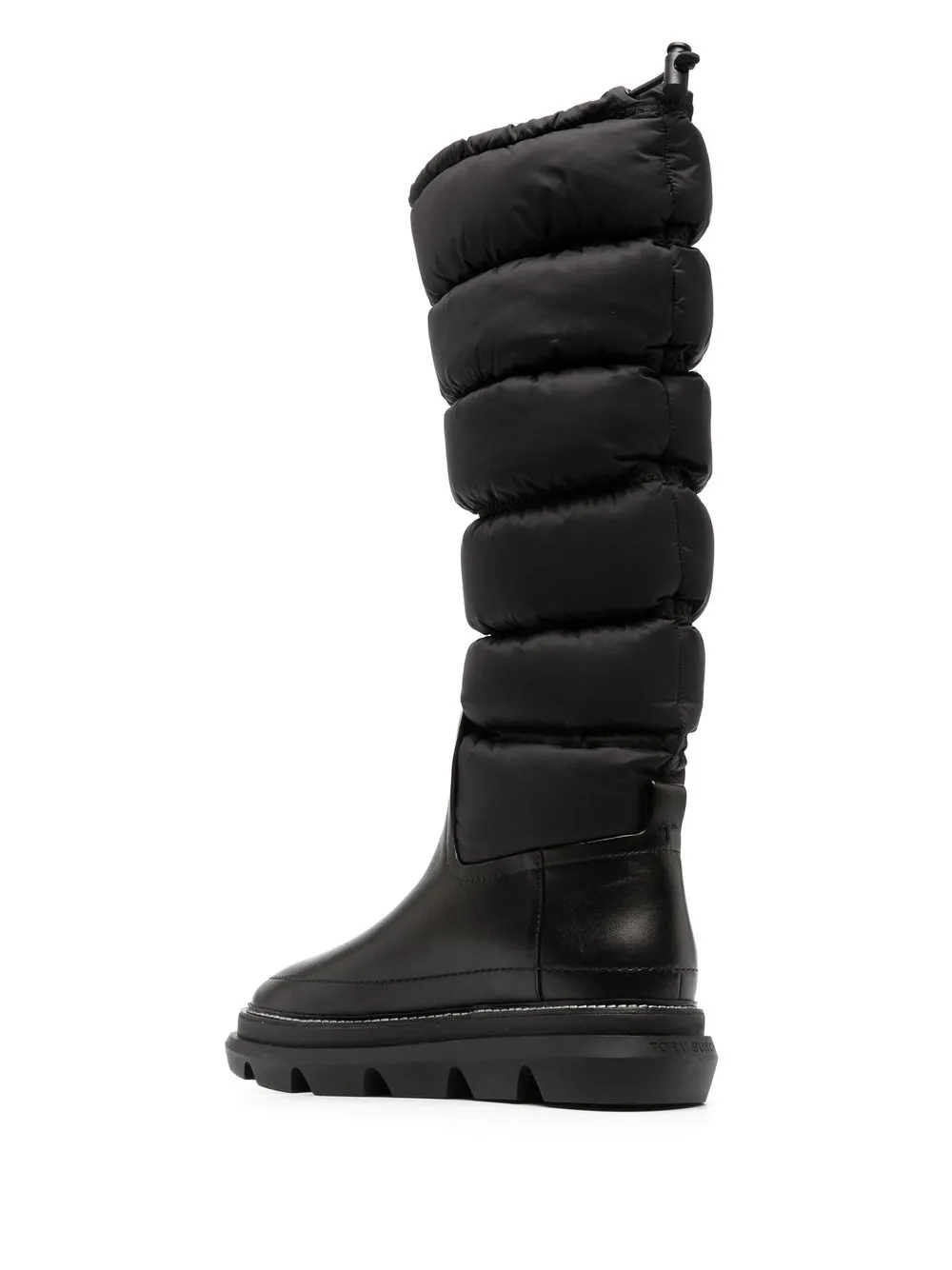 padded leather boots from TORY BURCH featuring black, calf leather, padded design, knee-length, round toe and ridged rubber sole.