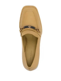 Perrine 55mm loafers from TORY BURCH featuring yellow, calf leather, logo plaque, round toe and low block heel.