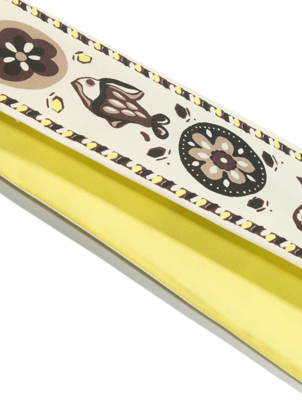 This ribbon tie by Tory Burch is crafted in silk twill with a hand-painted print on one side and a solid-yellow reverse. Tie it around the neck or knot it to a bag.