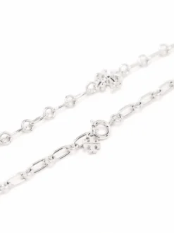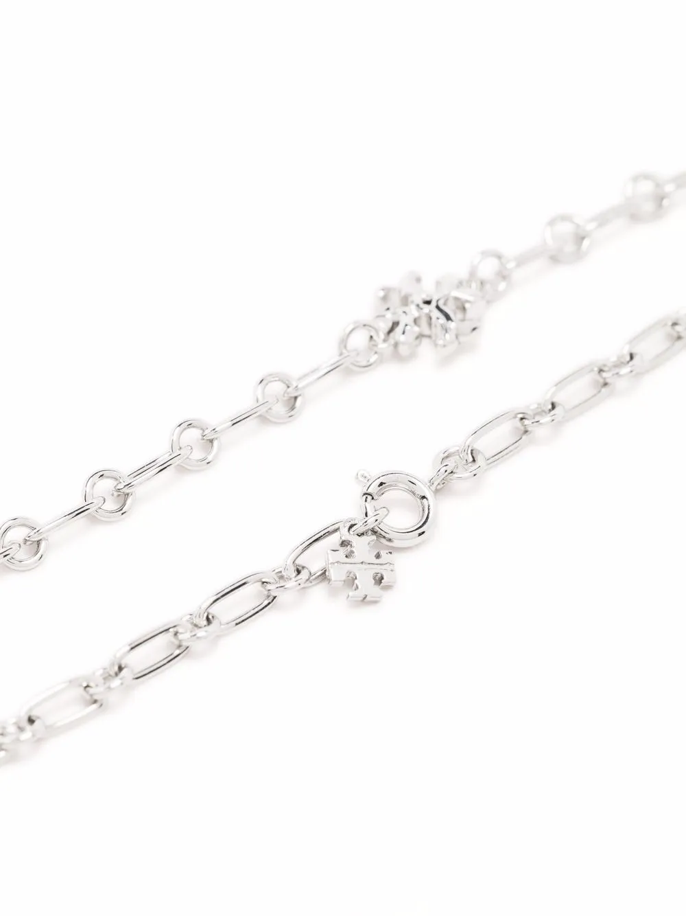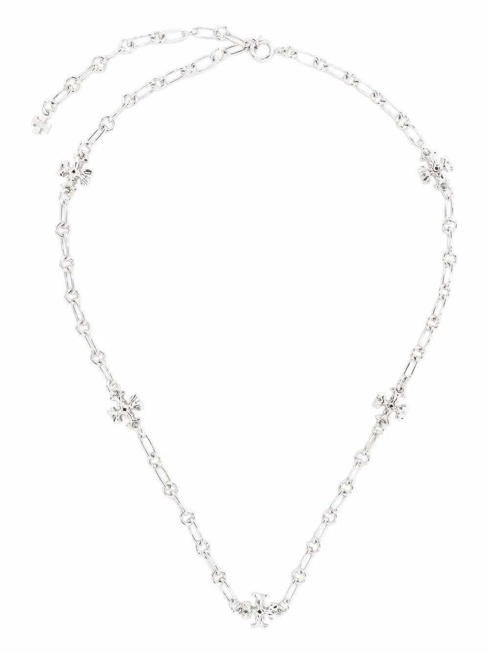 Tory Burch’s Roxanne necklace honours the brand’s recognisable logo. This shiny pewter iteration is interspersed with polished chain links and strung with the Double T emblem.