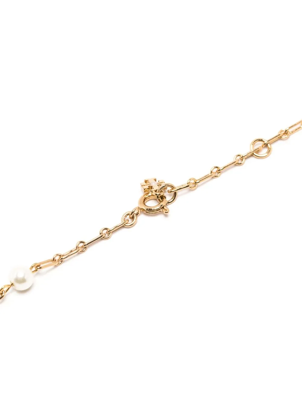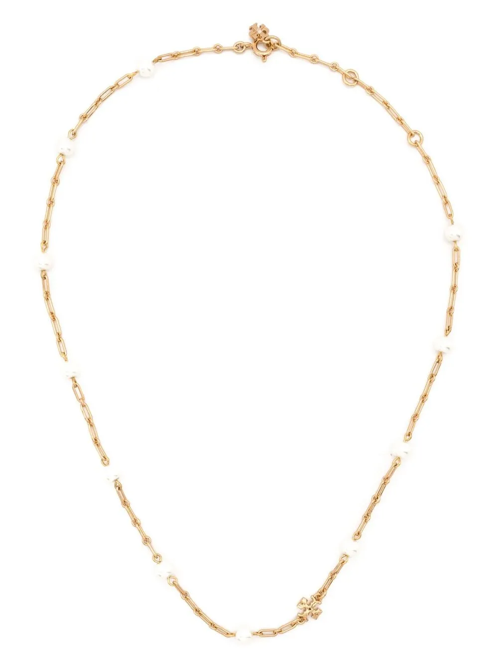Roxanne chain necklace from TORY BURCH featuring gold-tone, cable-link chain, logo charm, bead detailing and lobster claw fastening.