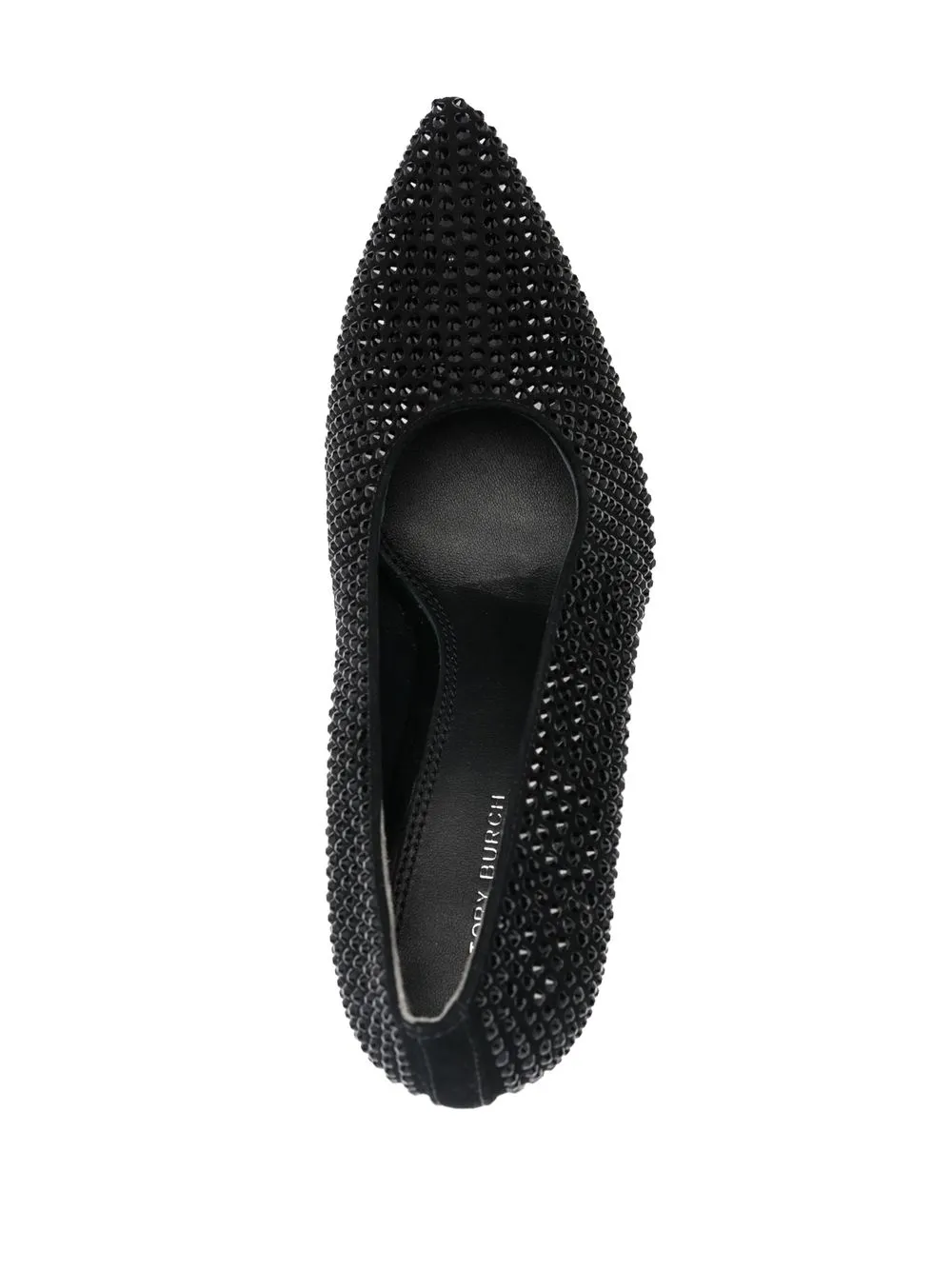 studded point-toe pumps from TORY BURCH featuring black, calf leather, spike stud detailing, pointed toe, branded leather insole, slip-on style and 95mm stiletto heel.