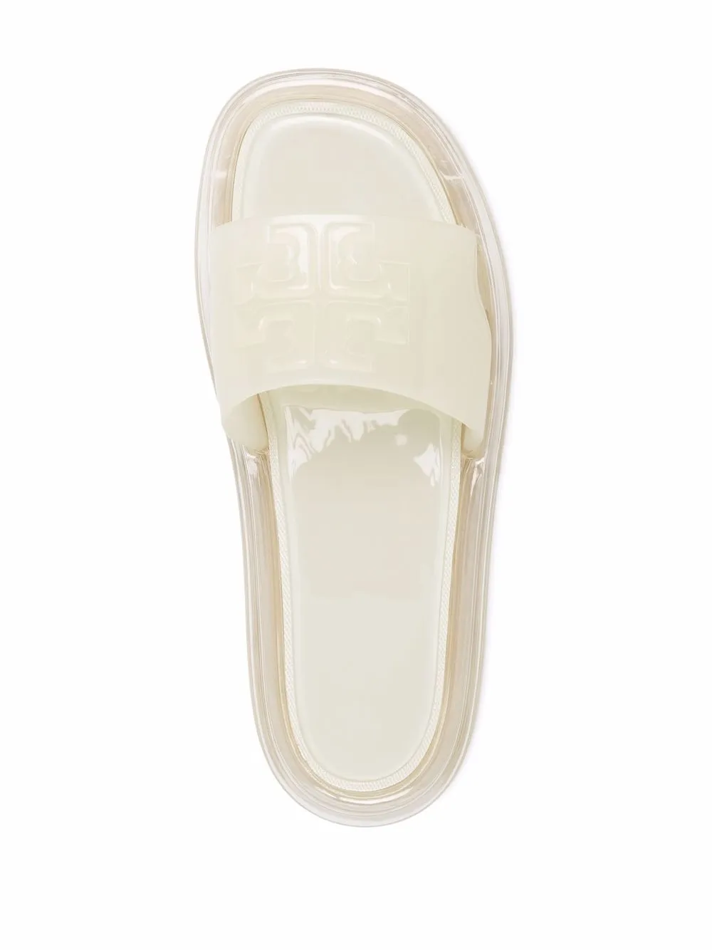 Tory Burch’s monogram was created in 2004 and has been the only icon used ever since. Inspired by a design from David Hicks; a Moroccan interior designer in the ’70s, it is showcased on this pair of open-toe sandals in an innovative way, as a tonal embossed design.