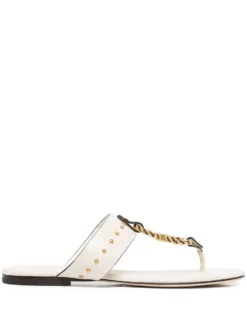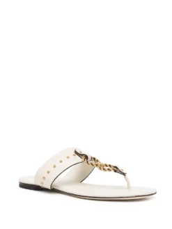 Vintage Plaque Sandal from TORY BURCH featuring ivory white, leather, gold-tone hardware, open toe, slip-on style and branded insole.